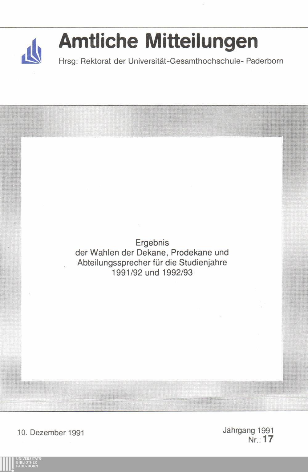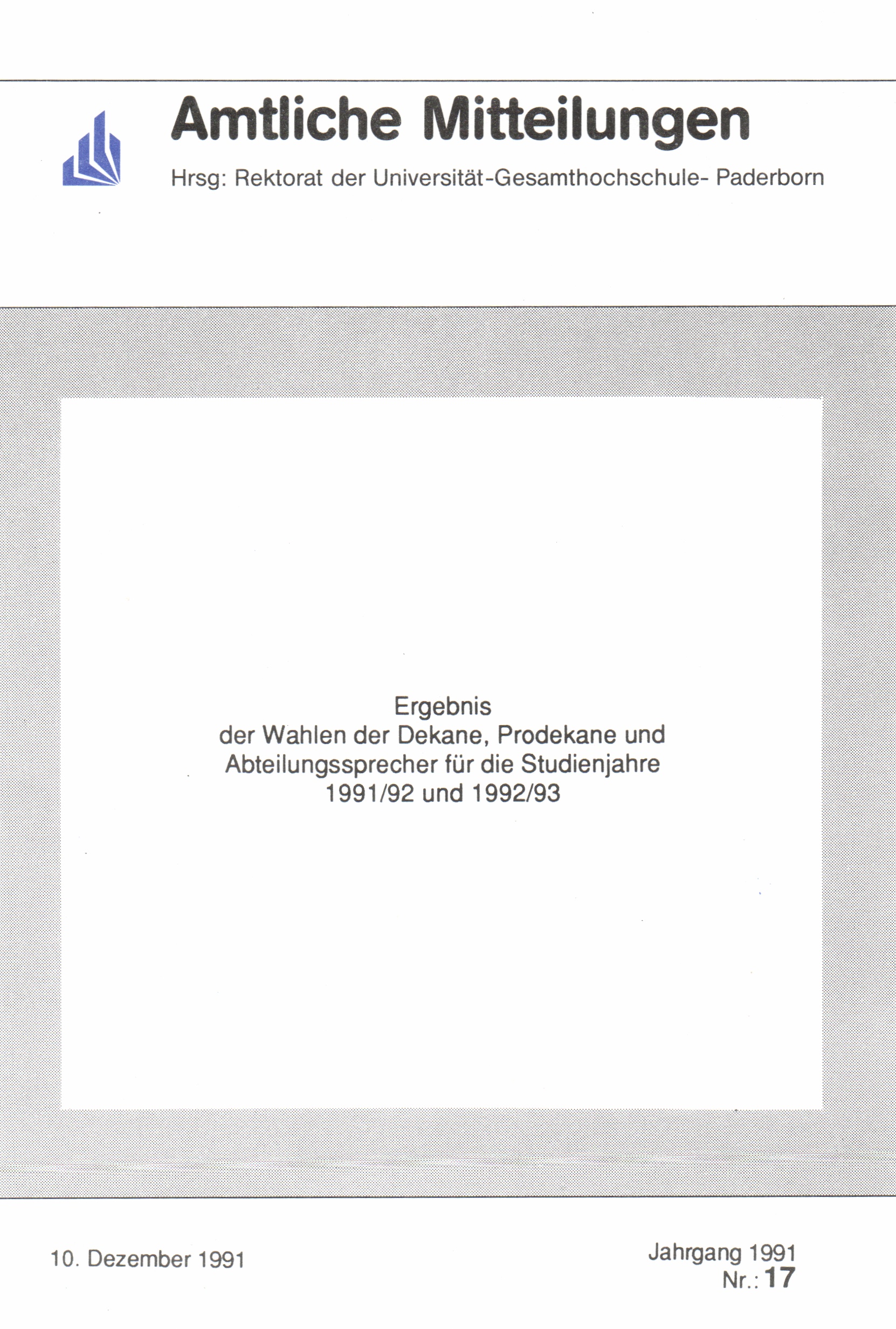Ergebnis der Wahlen der Dekane, Prodekane und Abteilungssprecher für die Studienjahre 1991/92 und 1992/93 : 10. Dezember 1991