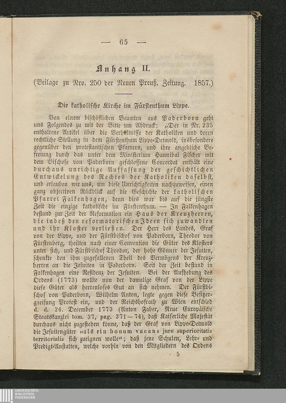 Vom Kloster Falkenhagen : ein Beitrag aus dem Lippischen, zur Geschichte und Beleuchtung des Verhaltens der römisch-katholischen Kirche und Bischöfe gegen die evangelische Kirche und Landesfürsten / mitgetheilt von Chr. Fr. Melm