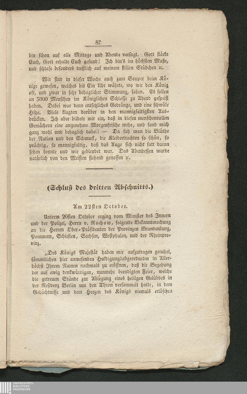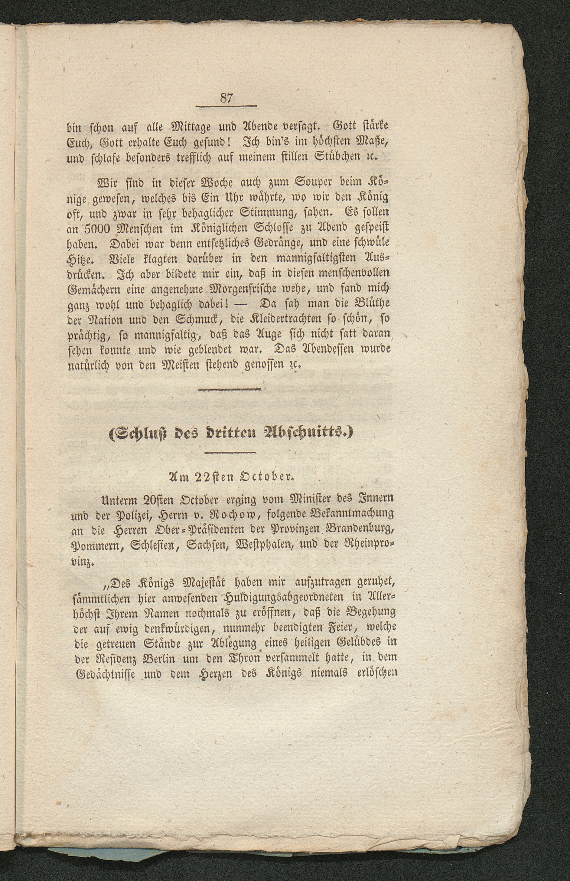 (Schluß des dritten Abschnitts.) Am 22sten October.