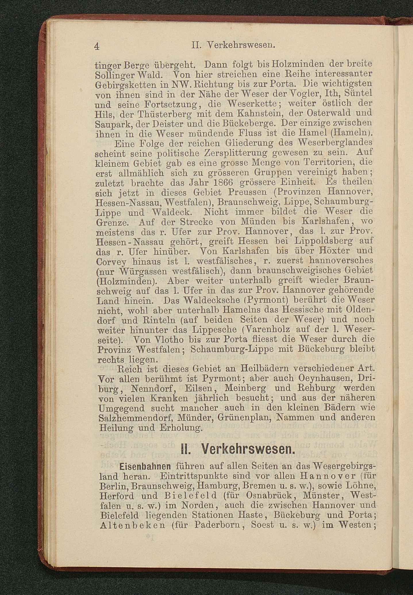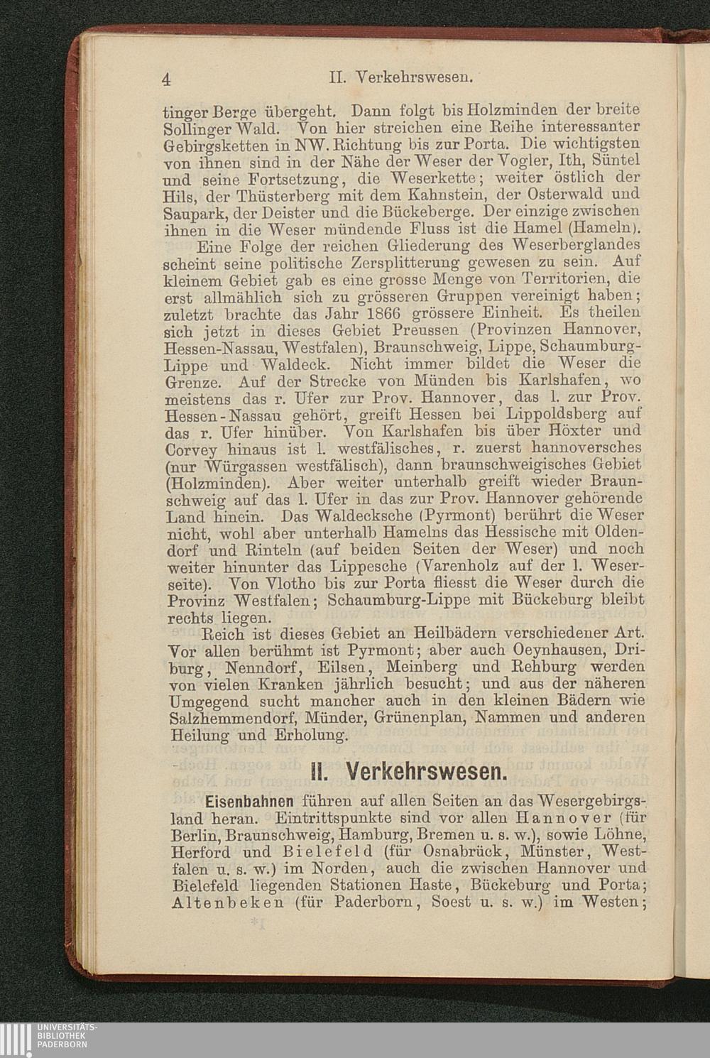 Wegweiser durch das Wesergebiet von Münden bis Minden : nebst Teutoburger Wald, Deister, Ith, Hils, Solling, Reinhardswald, mit besonderer Berücksichtigung der Bäder Pyrmont, Oeynhausen, Eilsen, Nenndorf, Driburg, Meinberg und anderer ; mit Excursionskarte / von E. Görges