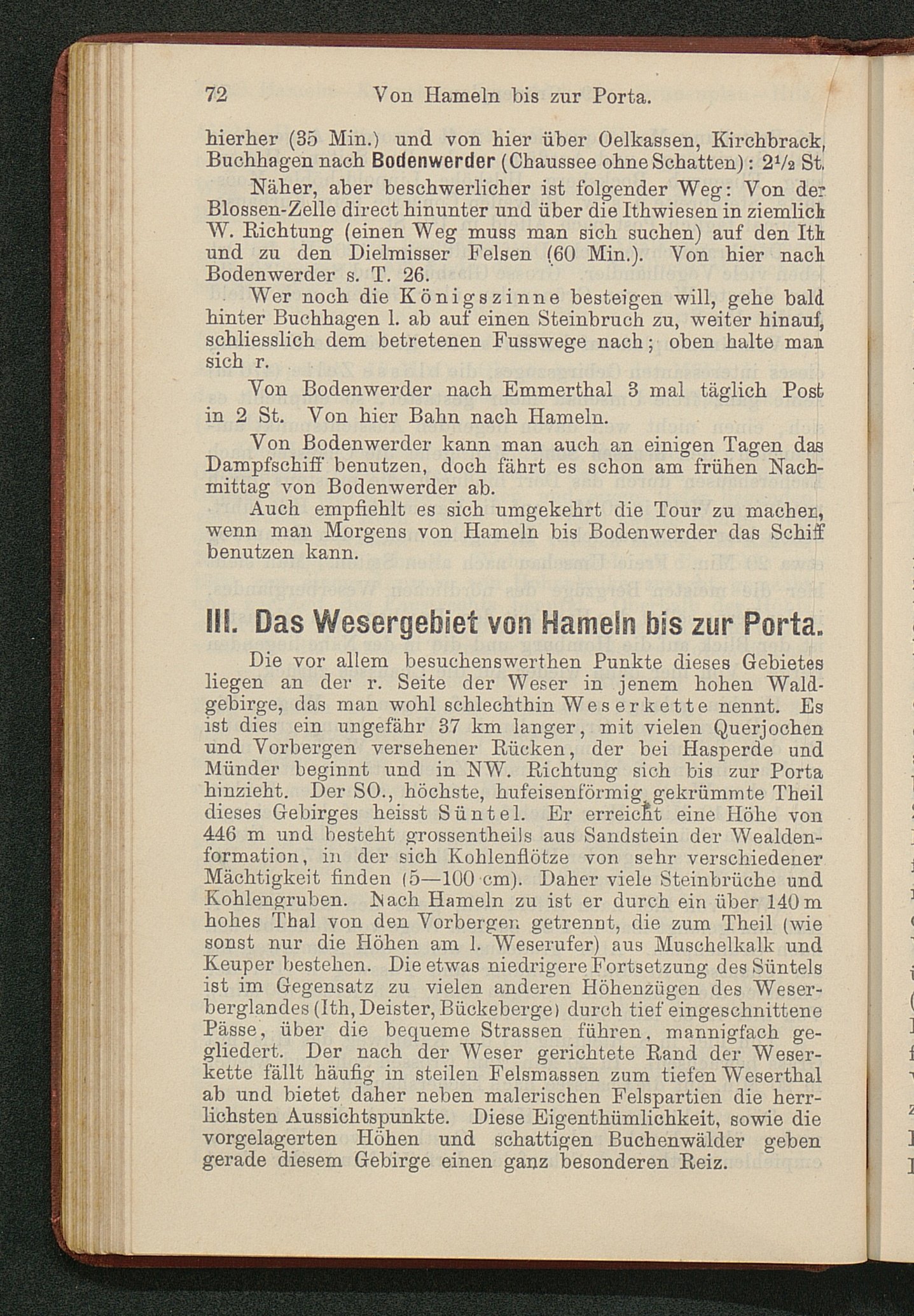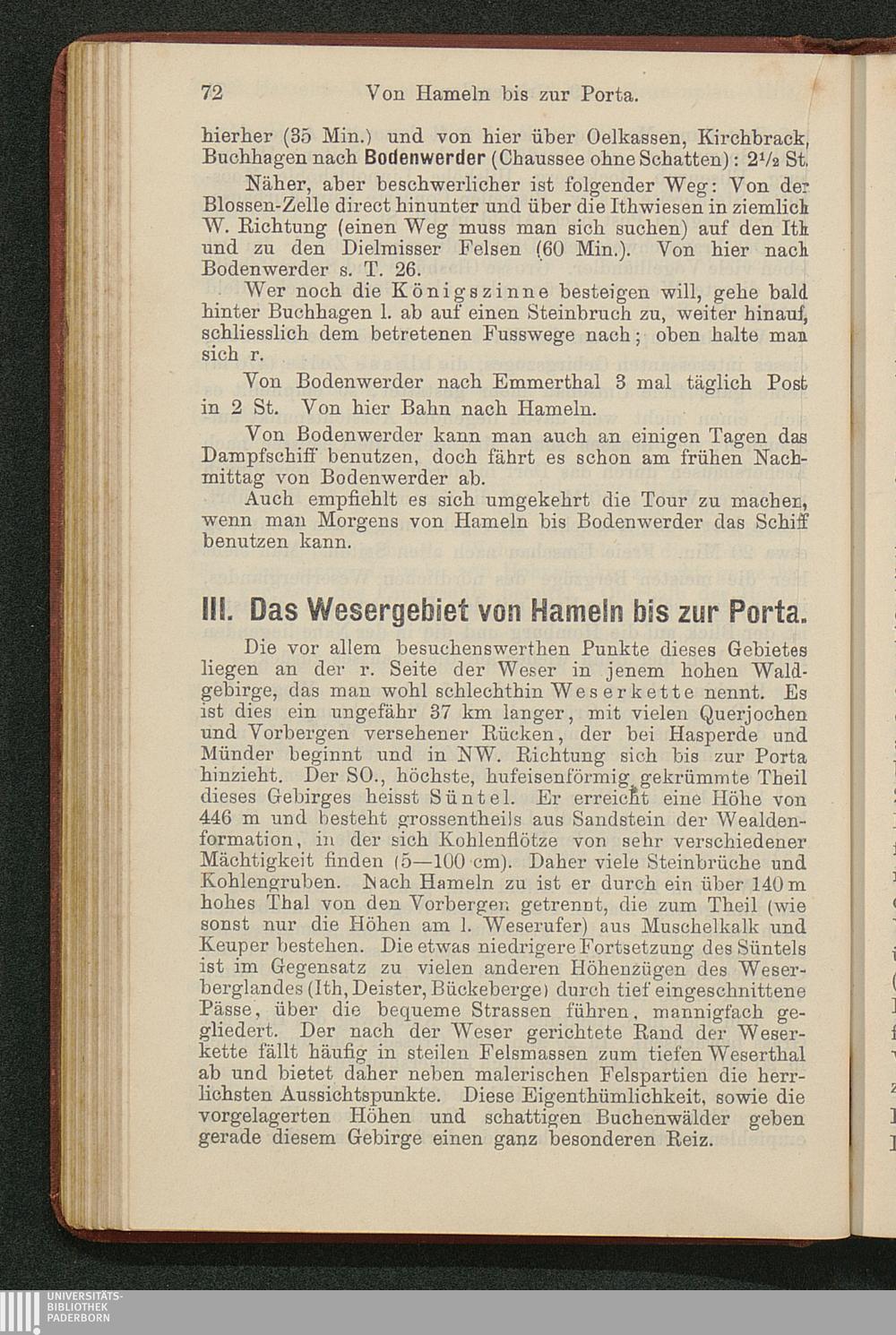 Wegweiser durch das Wesergebiet von Münden bis Minden : nebst Teutoburger Wald, Deister, Ith, Hils, Solling, Reinhardswald, mit besonderer Berücksichtigung der Bäder Pyrmont, Oeynhausen, Eilsen, Nenndorf, Driburg, Meinberg und anderer ; mit Excursionskarte / von E. Görges