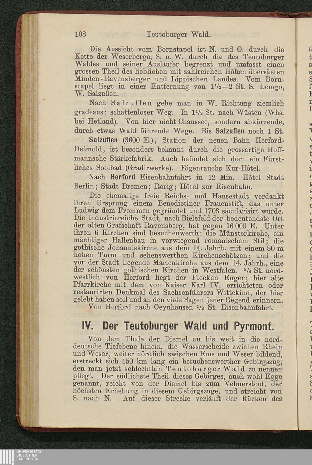 Wegweiser durch das Wesergebiet von Münden bis Minden : nebst Teutoburger Wald, Deister, Ith, Hils, Solling, Reinhardswald, mit besonderer Berücksichtigung der Bäder Pyrmont, Oeynhausen, Eilsen, Nenndorf, Driburg, Meinberg und anderer ; mit Excursionskarte / von E. Görges