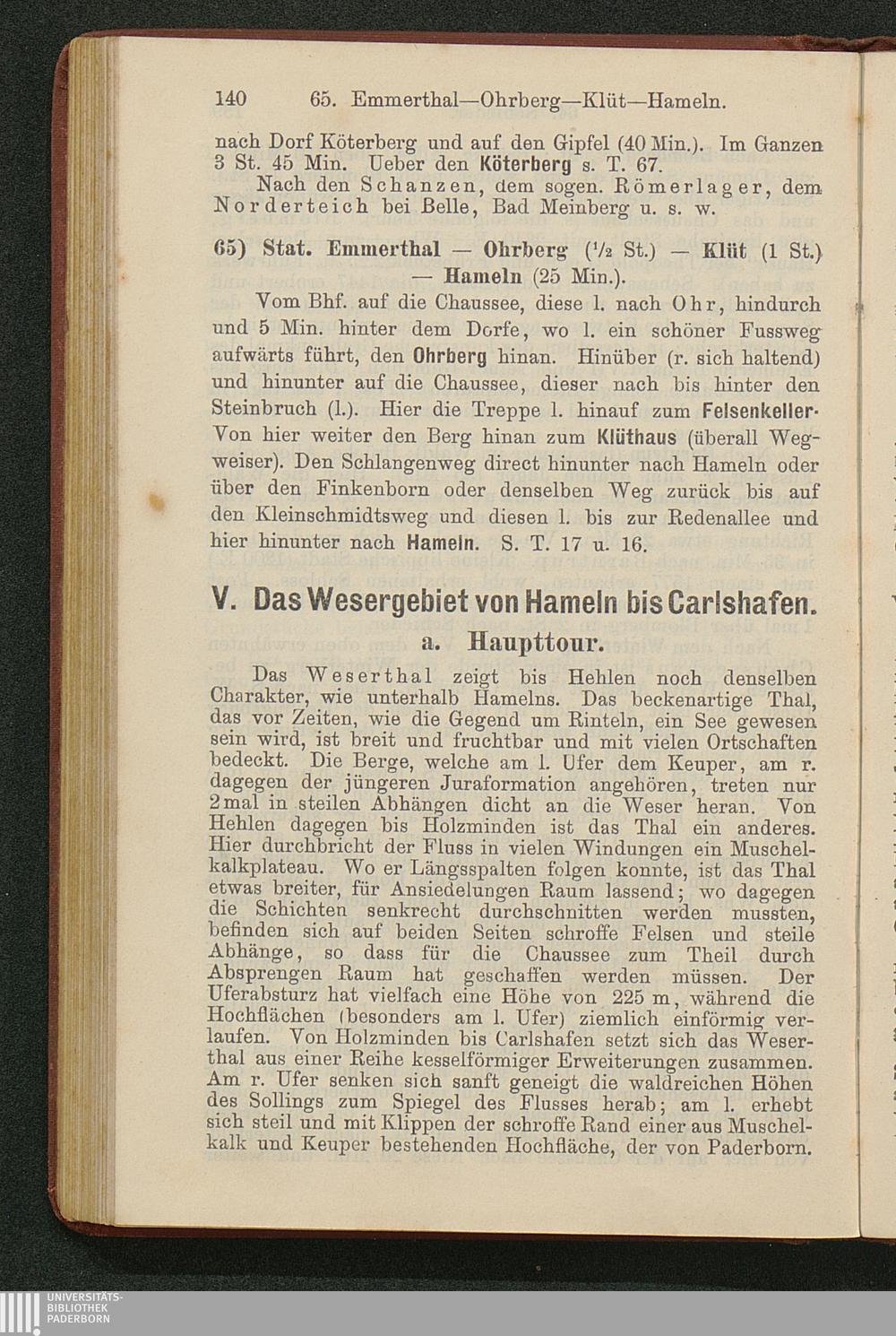 Wegweiser durch das Wesergebiet von Münden bis Minden : nebst Teutoburger Wald, Deister, Ith, Hils, Solling, Reinhardswald, mit besonderer Berücksichtigung der Bäder Pyrmont, Oeynhausen, Eilsen, Nenndorf, Driburg, Meinberg und anderer ; mit Excursionskarte / von E. Görges
