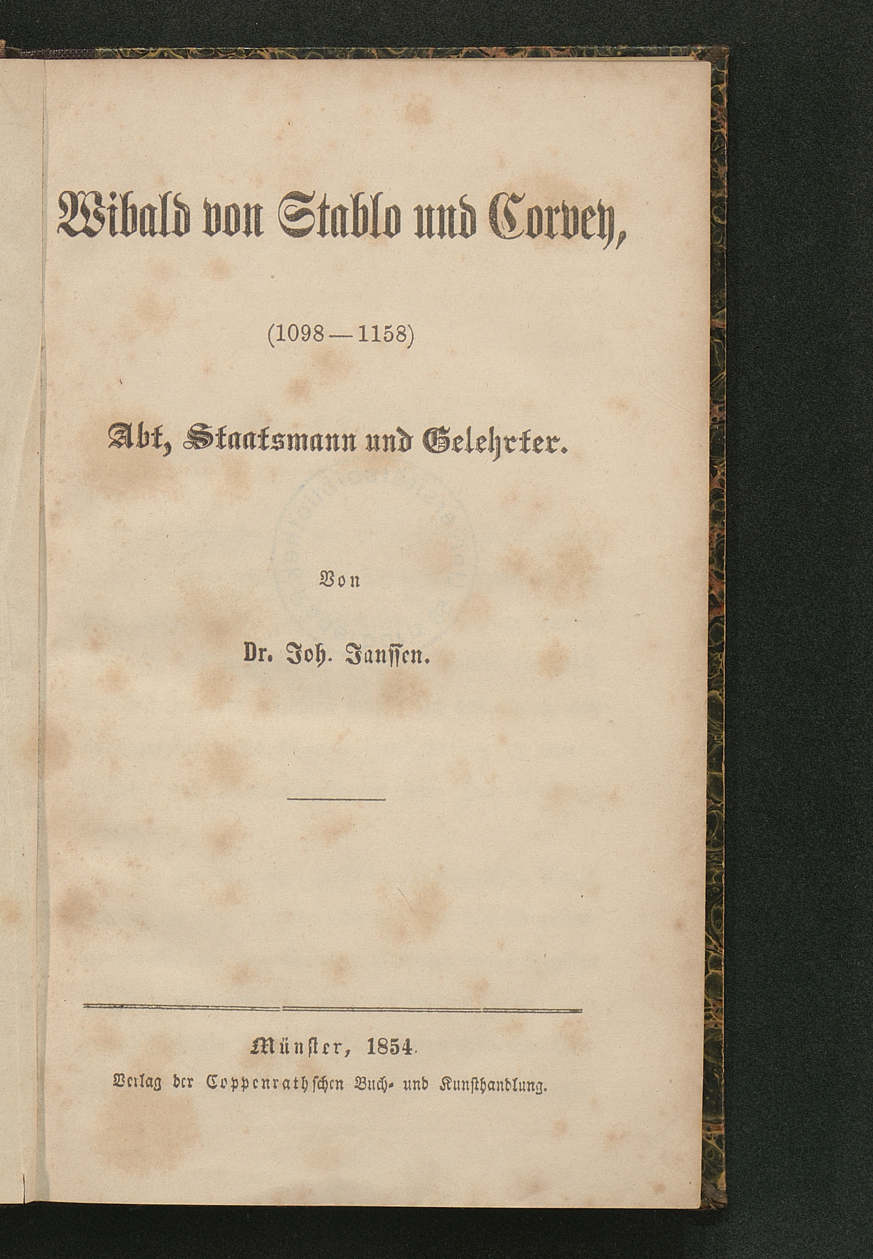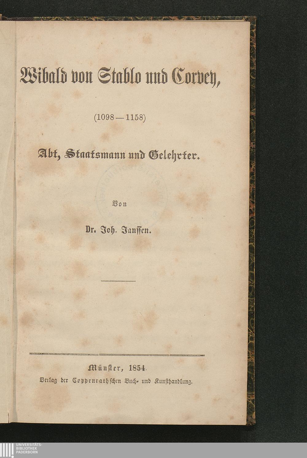 Wibald von Stablo und Corvey, (1098 - 1158), Abt, Staatsmann und Gelehrter / von Joh. Janssen
