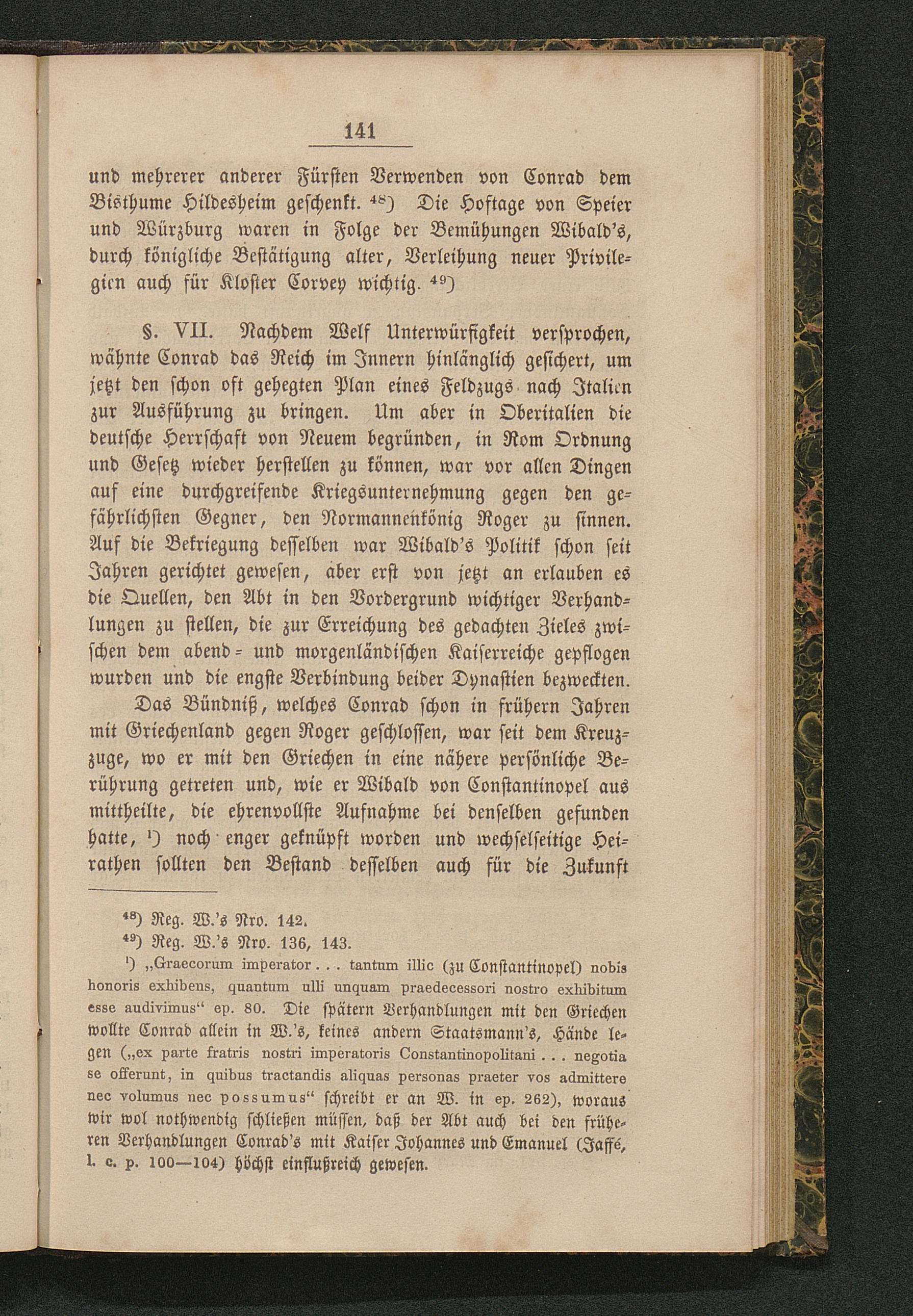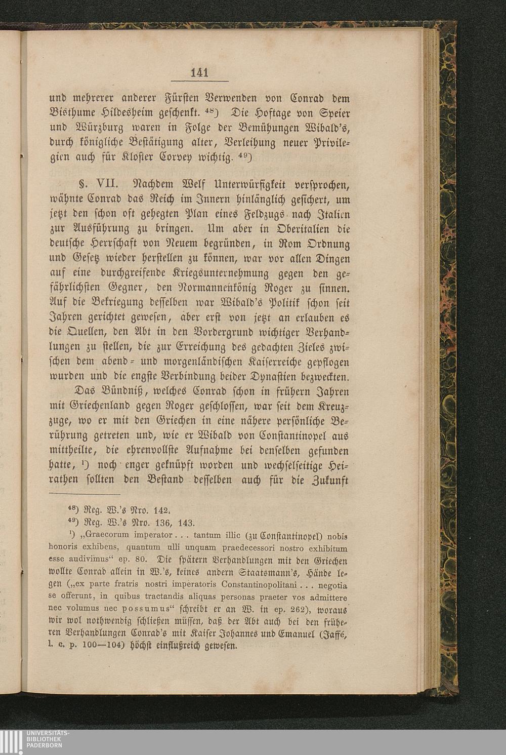 §. VII. Bündniß Conrad's III. mit Griechenland. W.'s Einfluß. König Roger von Sicilien[...]