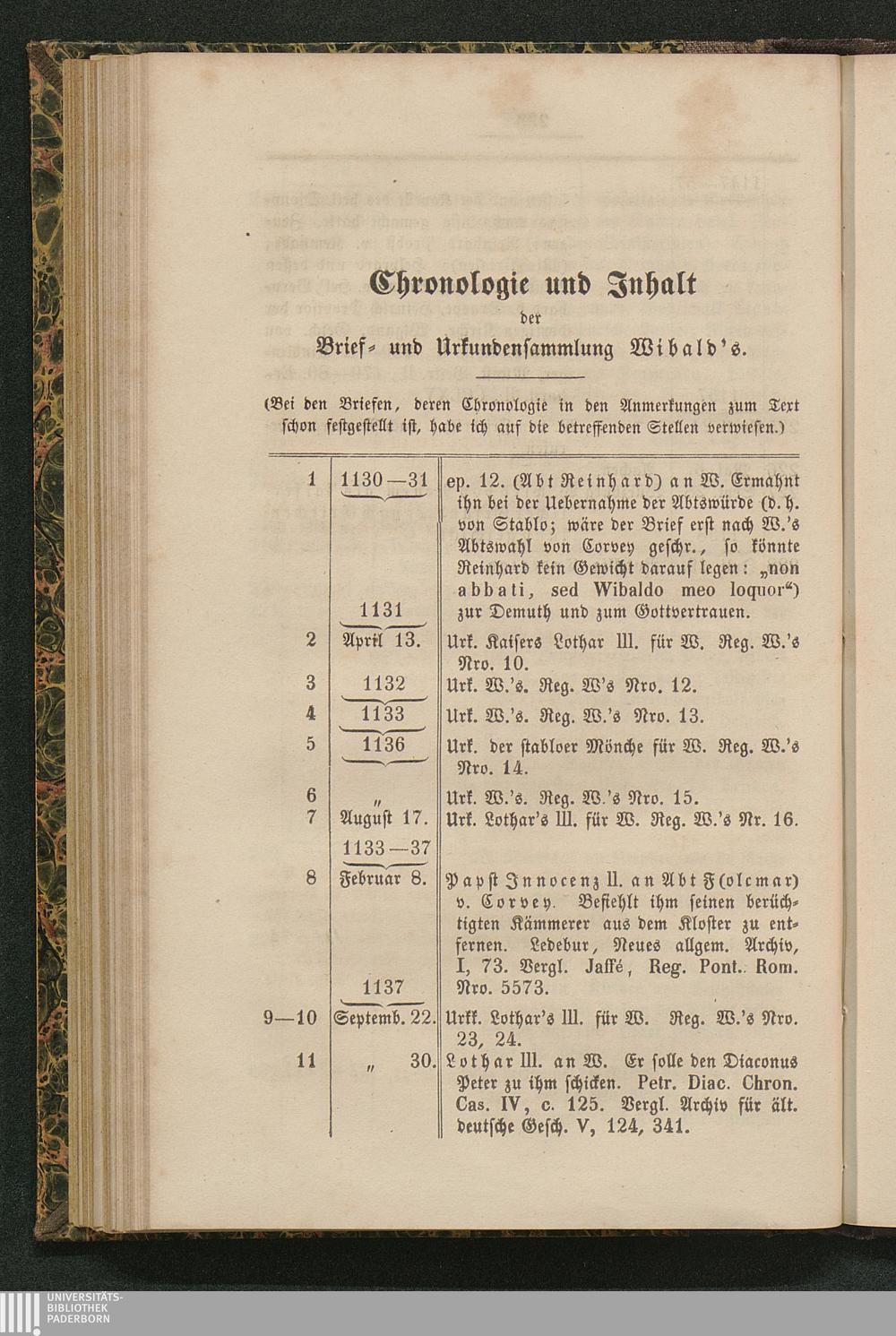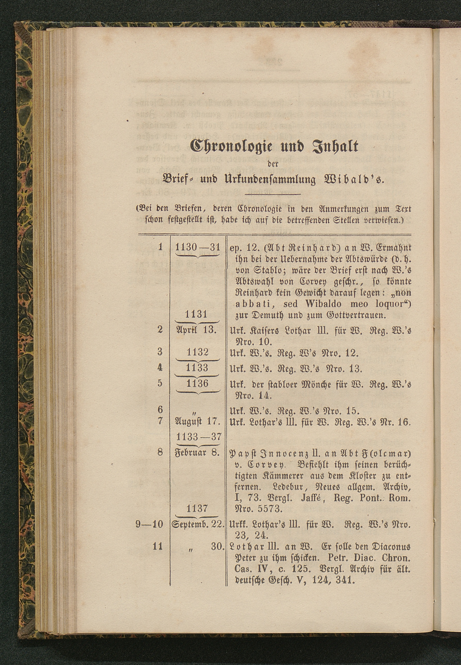 Chronologie und Jnhalt der Brief- und Urkundensammlung W.'s.