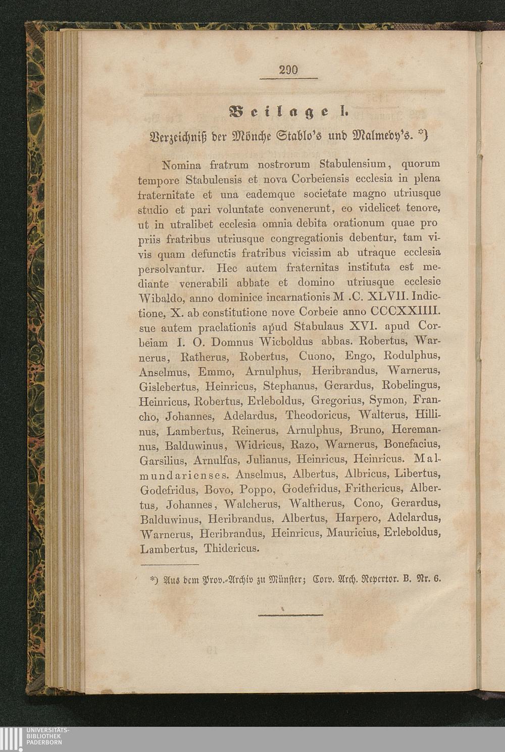 Verzeichniß der Mönche Stablo's und Malmedy's