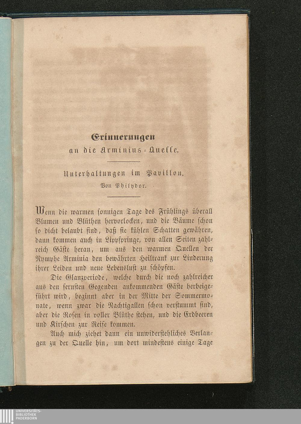 Arminia : Geschichtliches und Gedichtetes zur Feier des fünfundzwanzigjährigen Bestehens der Bäder an der Arminiusquelle zu Lippspringe