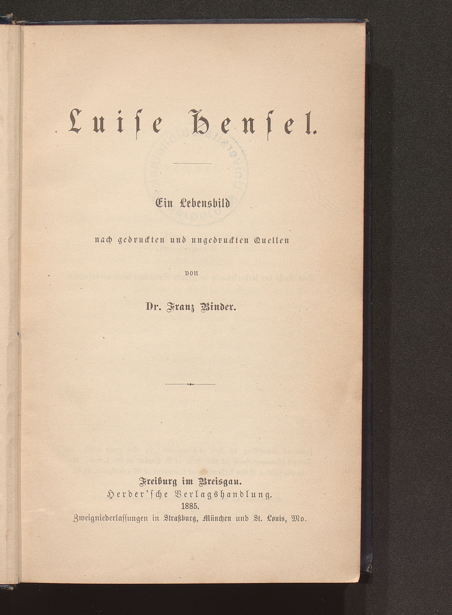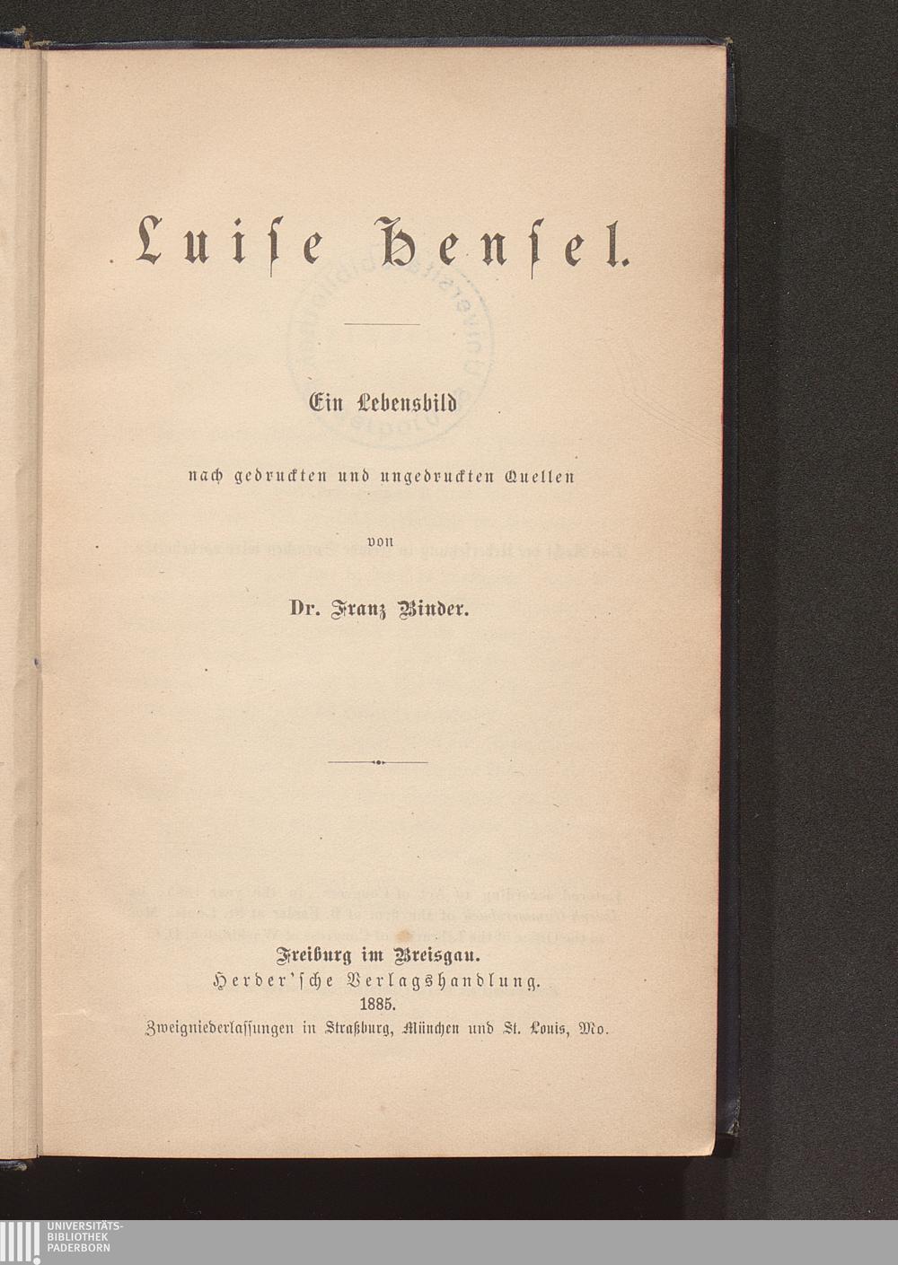 Luise Hensel : ein Lebensbild nach gedruckten und ungedruckten Quellen / von Franz Binder