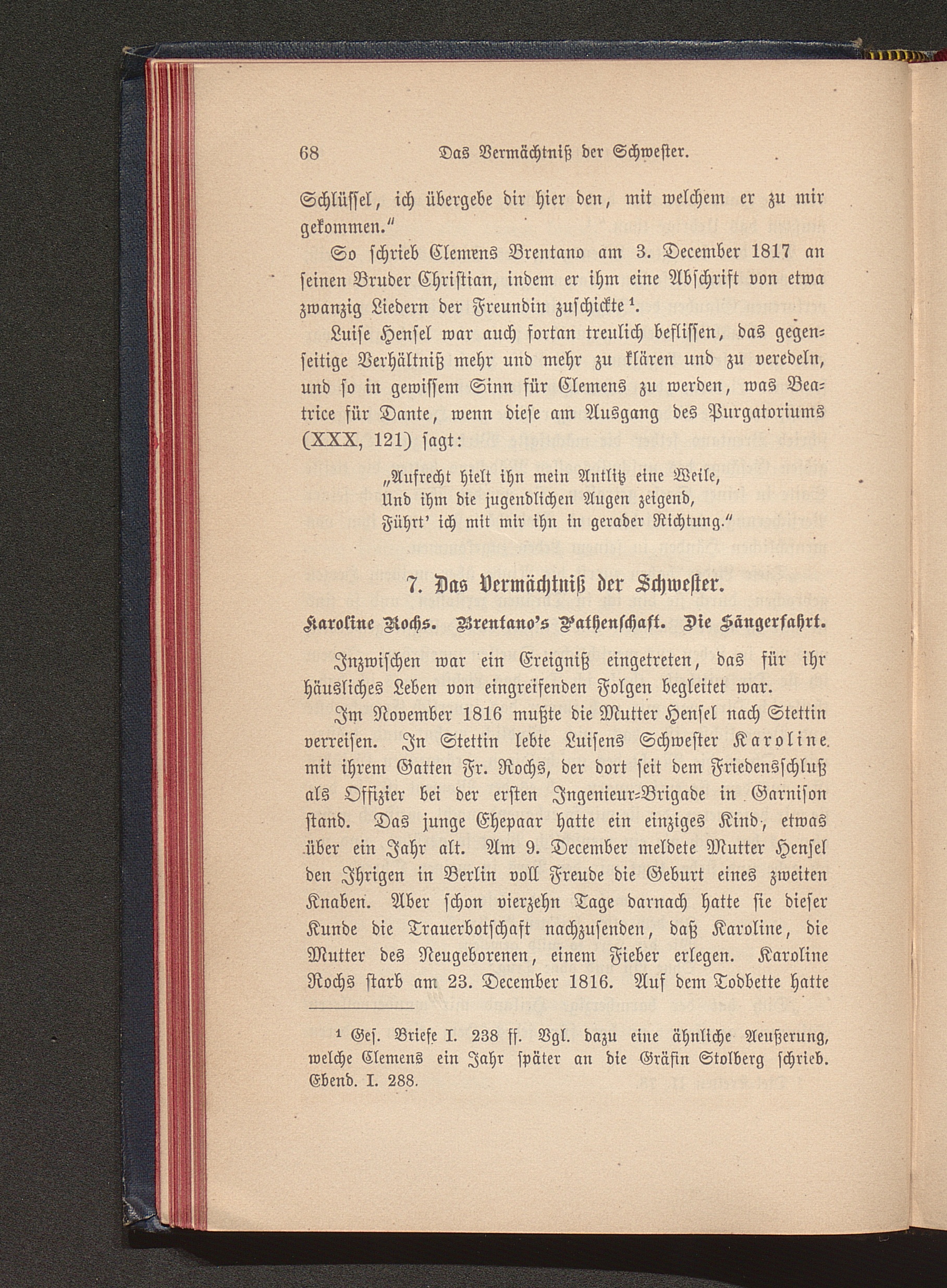 7. Das Vermächtniß der Schwester. Karoline Rochs. Brentano's Pathenschaft. Die Sängerfahrt.[...]