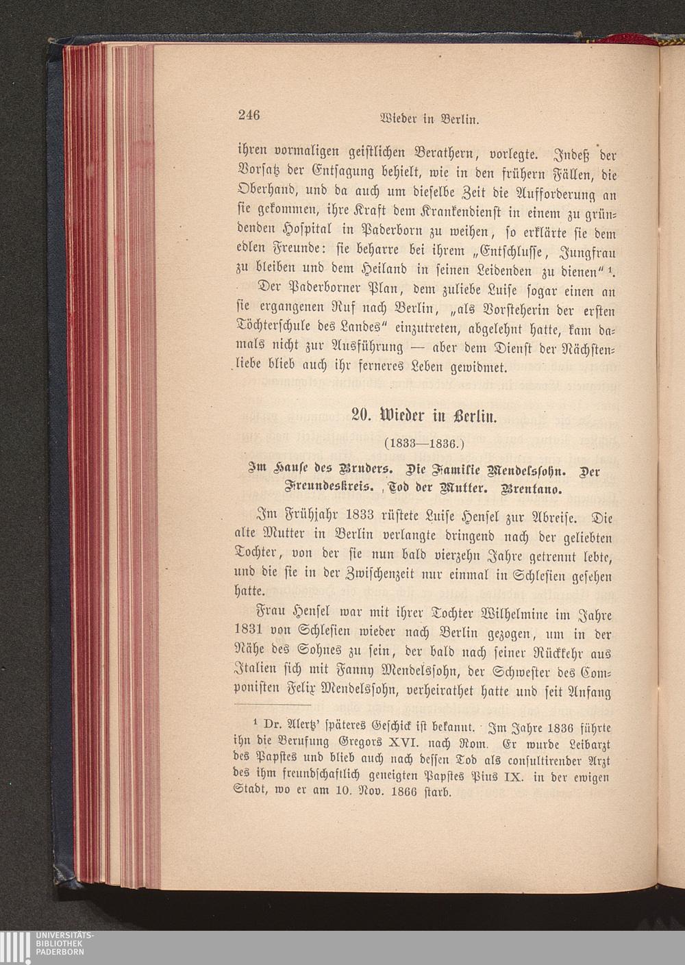 20. Wieder in Berlin. Jm Hause des Bruders. Die Familie Mendelssohn. Der Freundeskreis.[...]