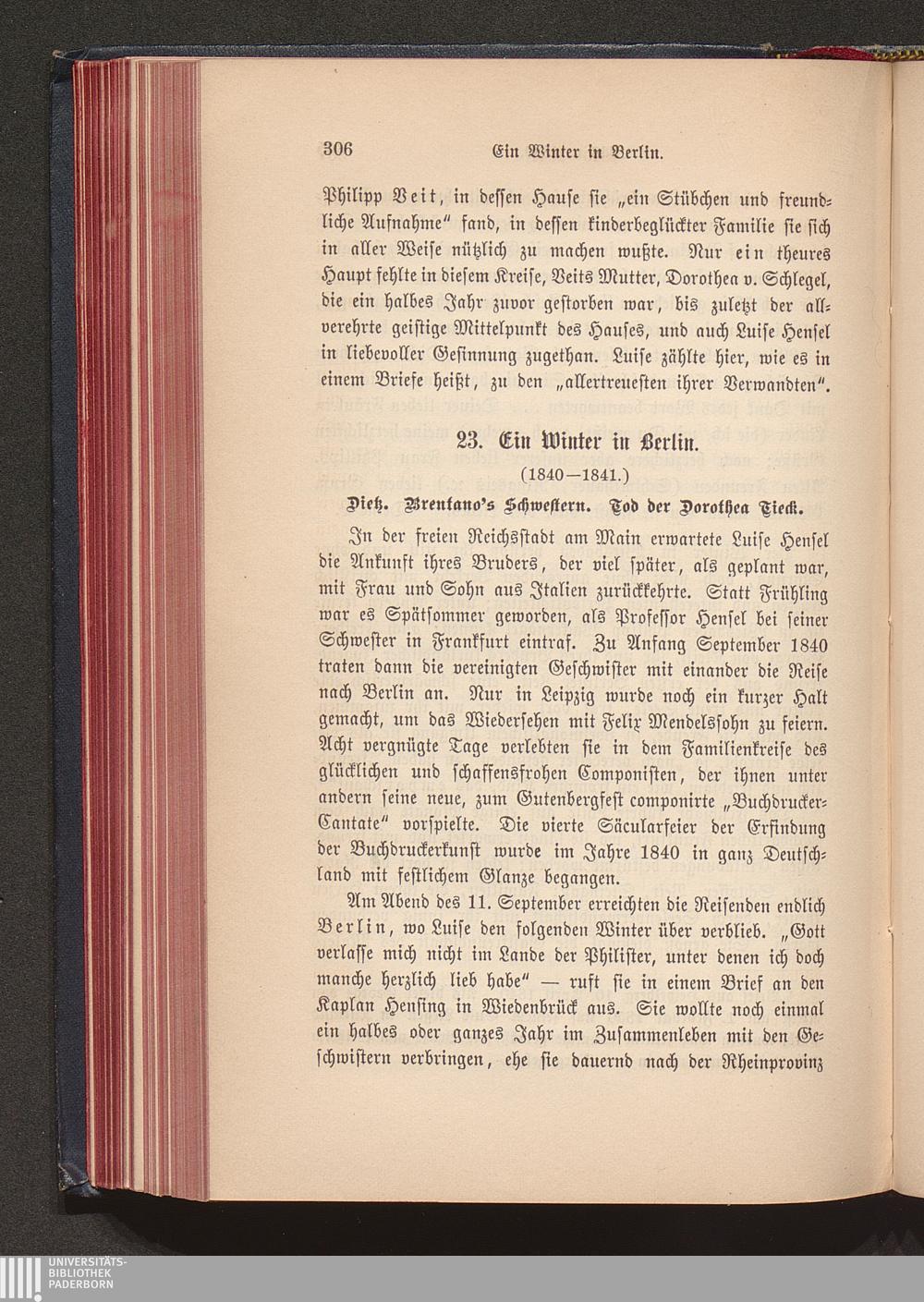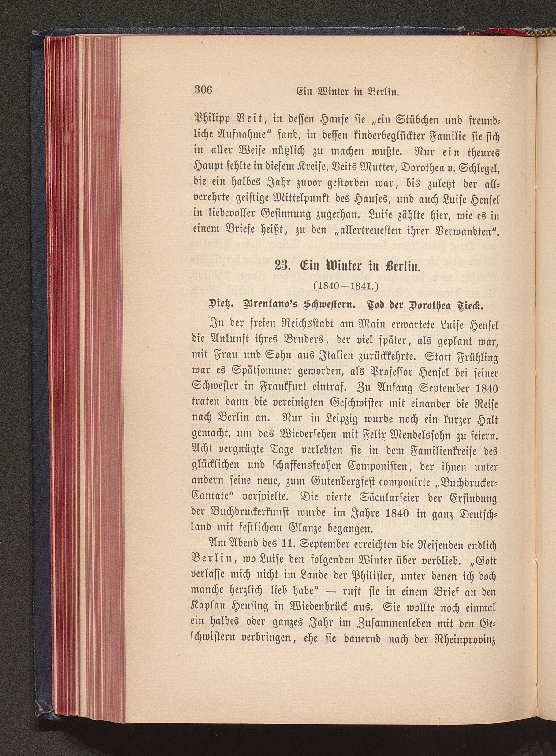 23. Ein Winter in Berlin. Dietz. Brentano's Schwestern. Tod der Dorothea Tieck. (1840[...]