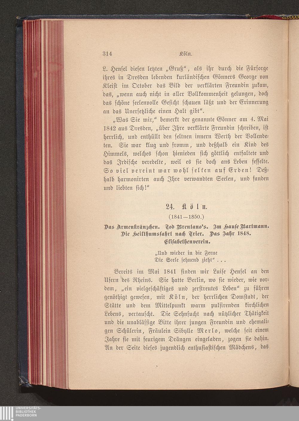 24. Köln. Das Armenkränzchen. Tod Brentano's. Jm Hause Bartmann. Die Heilthumsfahrt[...]
