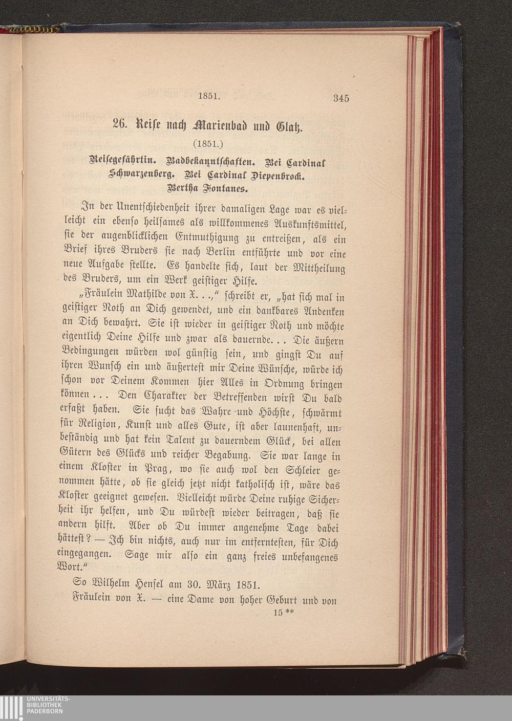 26. Reise nach Marienbad und Glatz. Reisegefährtin. Badbekanntschaften. Bei Cardinal[...]