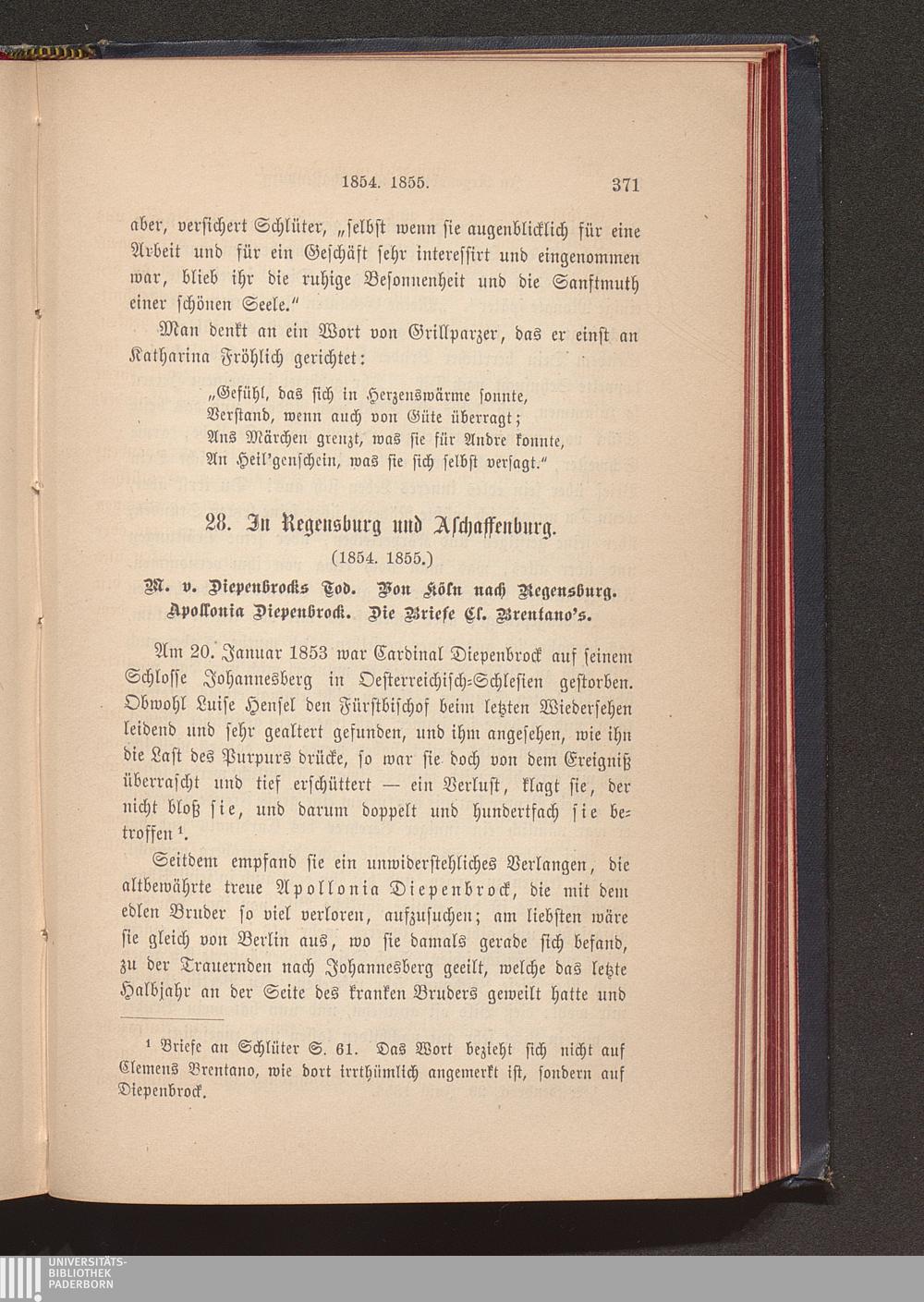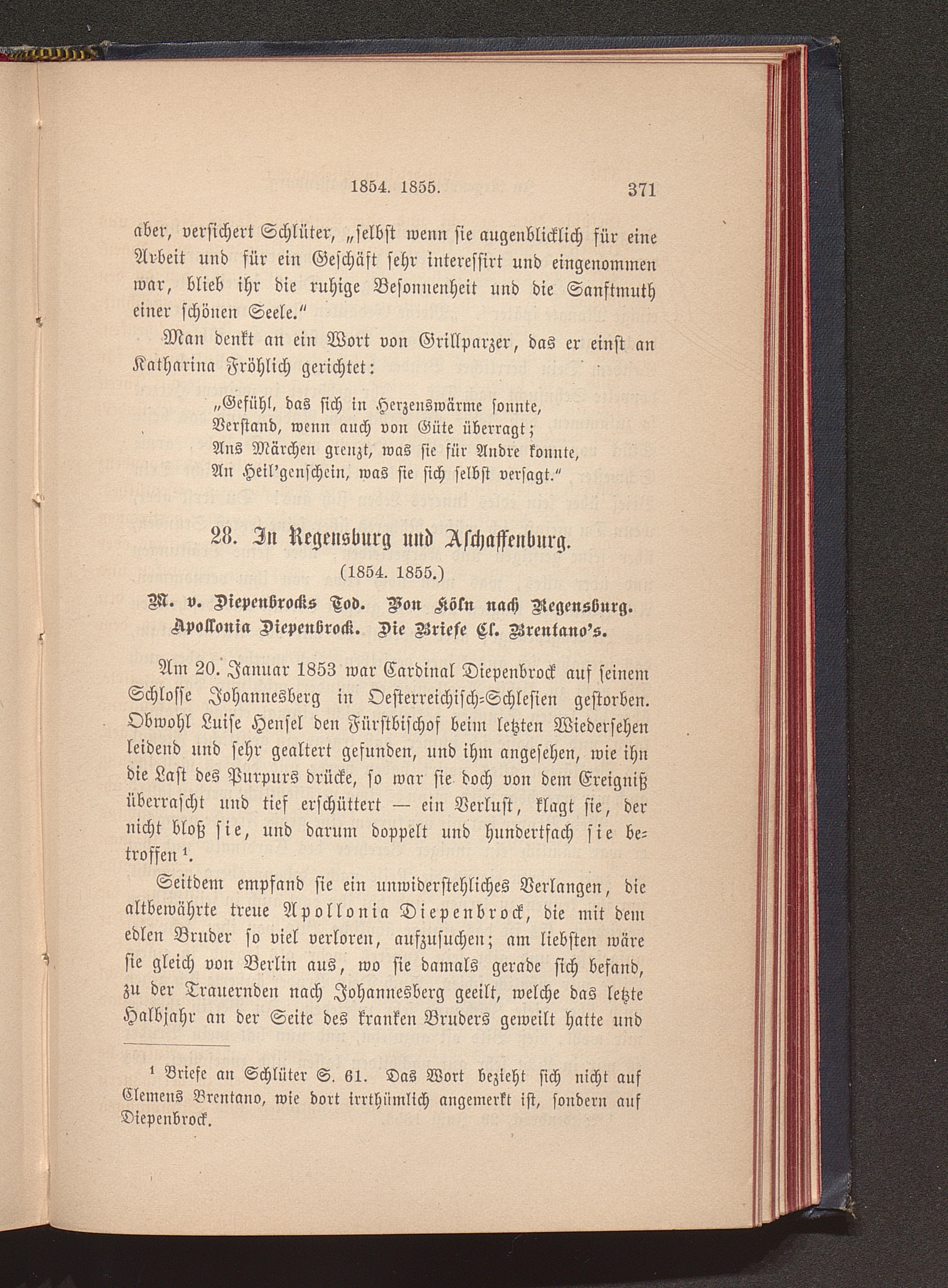 28. Jn Regensburg und Aschaffenburg. M. v. Diepenbrocks Tod. Von Köln nach Regensburg.[...]