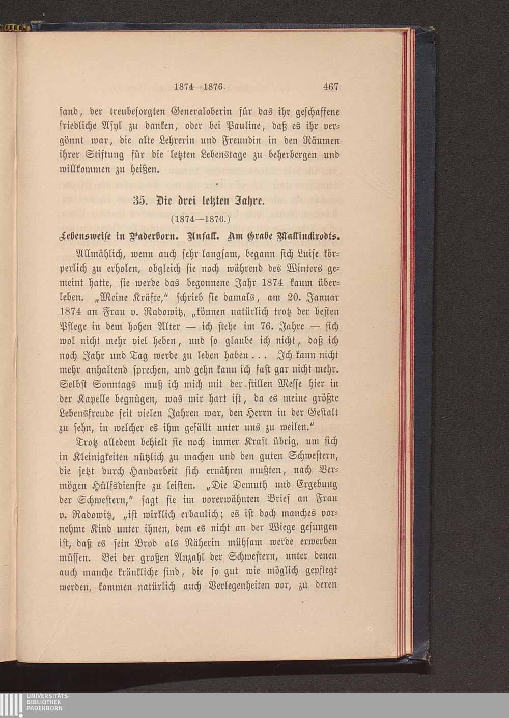 35. Die drei letzten Jahre. Lebensweise in Paderborn. Unfall. Am Grabe Mallinckrodts.[...]