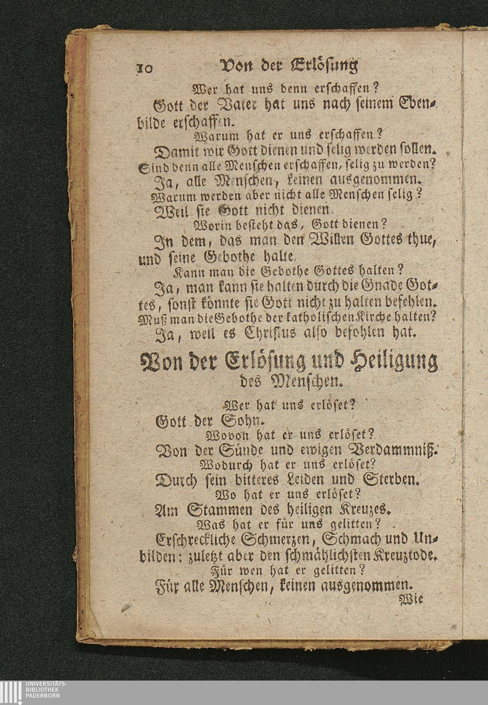 Katholischer Katechismus zum allgemeinen Gebrauche in Kirchen, Schulen und Häusern : in drey besondern Abhandlungen nach dreyfacher Fähigkeit: 1. der kleinern; 2. der mittlern; 3. der mehr erwachsenen Schuljugend eingerichtet, und auf gnädigsten Befehl Jhrer Hochfürstl. Gnaden, Friderich Wilhelm, Bischofs zu Paderborn und Hildesheim ... für die Jugend Jhres Hochstifts Paderborn abgedruckt