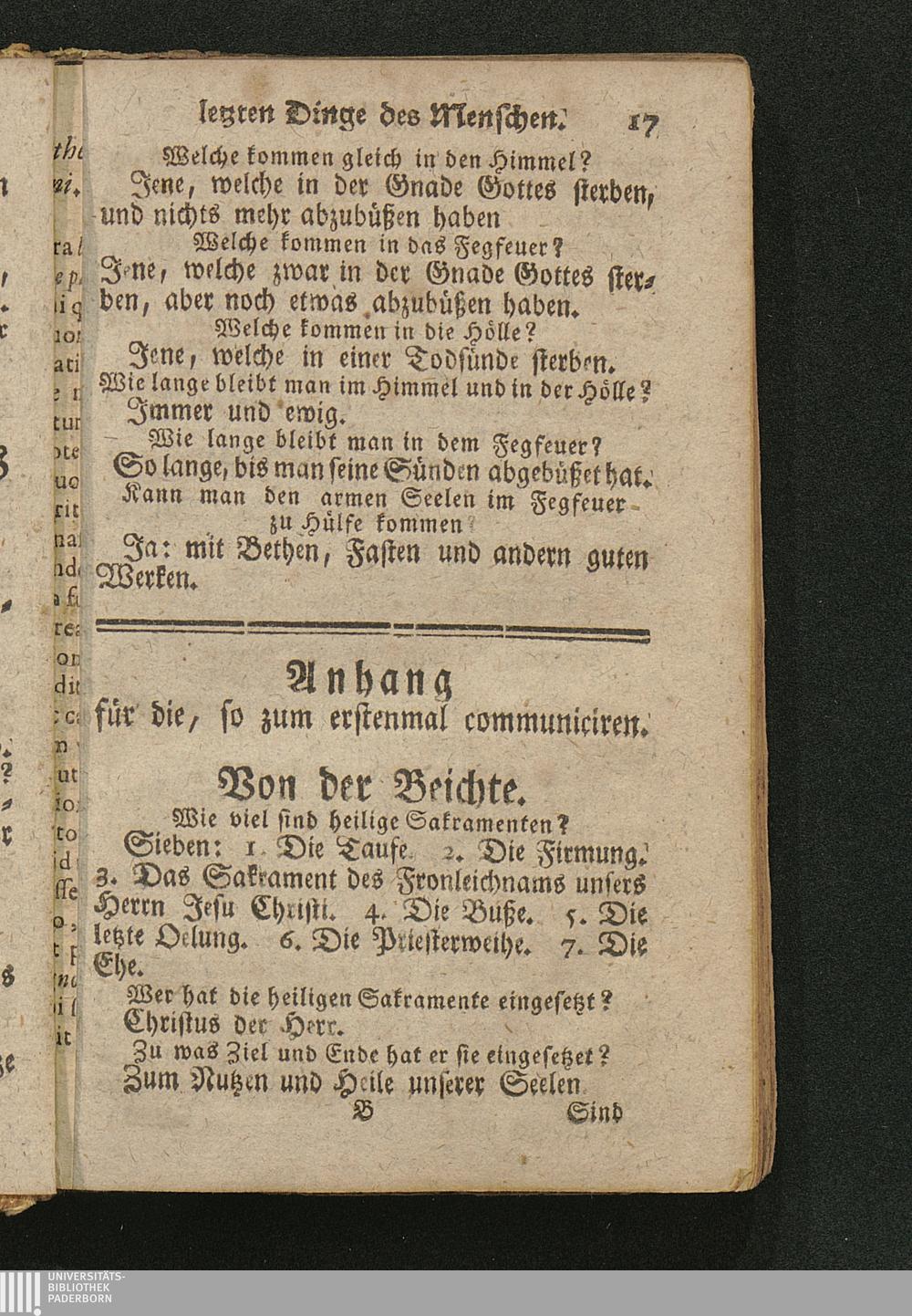 Katholischer Katechismus zum allgemeinen Gebrauche in Kirchen, Schulen und Häusern : in drey besondern Abhandlungen nach dreyfacher Fähigkeit: 1. der kleinern; 2. der mittlern; 3. der mehr erwachsenen Schuljugend eingerichtet, und auf gnädigsten Befehl Jhrer Hochfürstl. Gnaden, Friderich Wilhelm, Bischofs zu Paderborn und Hildesheim ... für die Jugend Jhres Hochstifts Paderborn abgedruckt