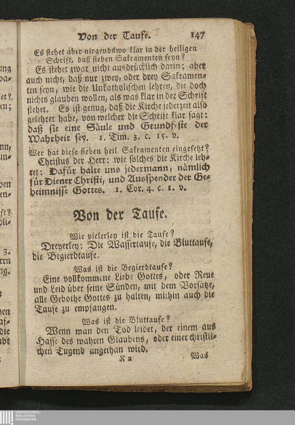 Katholischer Katechismus zum allgemeinen Gebrauche in Kirchen, Schulen und Häusern : in drey besondern Abhandlungen nach dreyfacher Fähigkeit: 1. der kleinern; 2. der mittlern; 3. der mehr erwachsenen Schuljugend eingerichtet, und auf gnädigsten Befehl Jhrer Hochfürstl. Gnaden, Friderich Wilhelm, Bischofs zu Paderborn und Hildesheim ... für die Jugend Jhres Hochstifts Paderborn abgedruckt