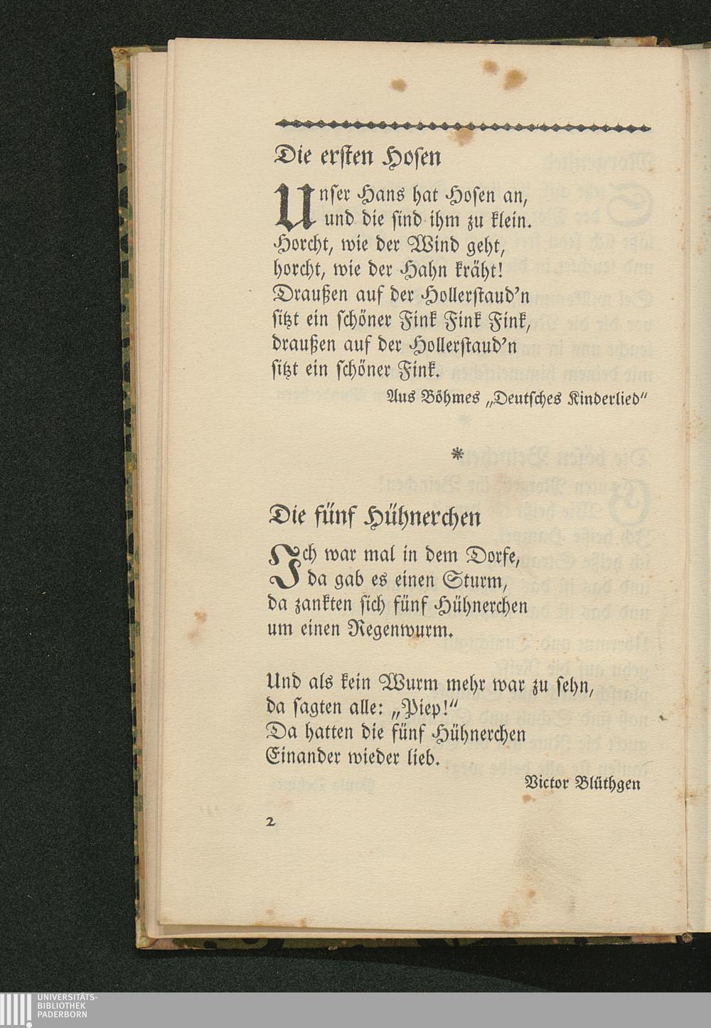 Die fünf Hühnerchen, Victor Blüthgen