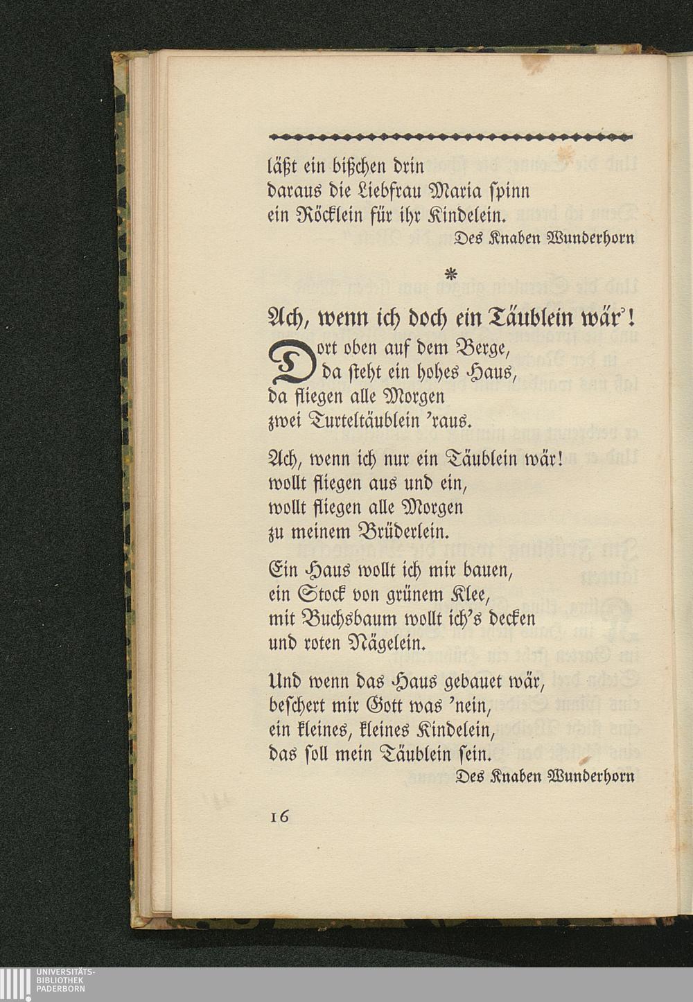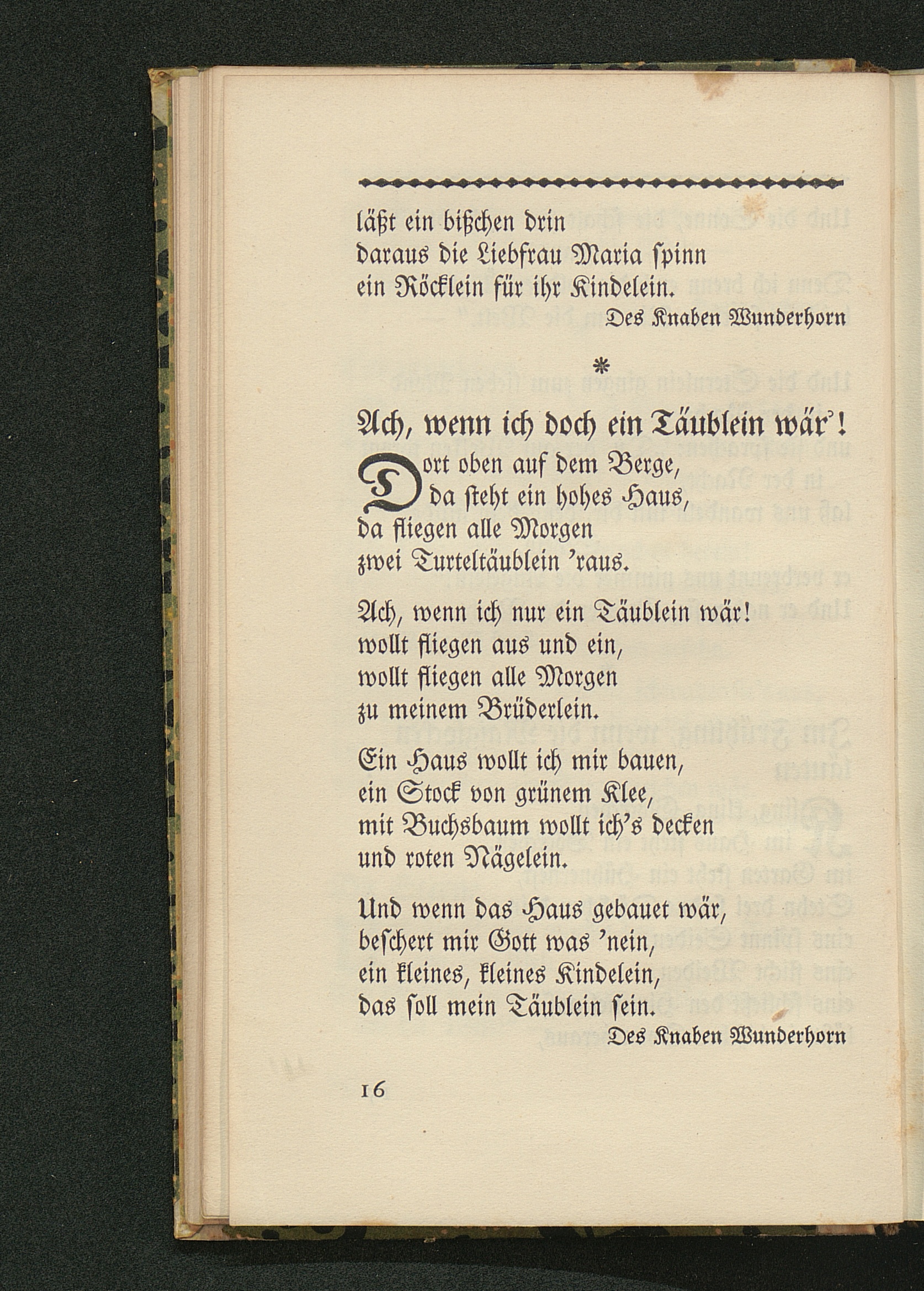 Ach, wenn ich doch ein Täublein wär'! aus des Knaben Wunderhorn