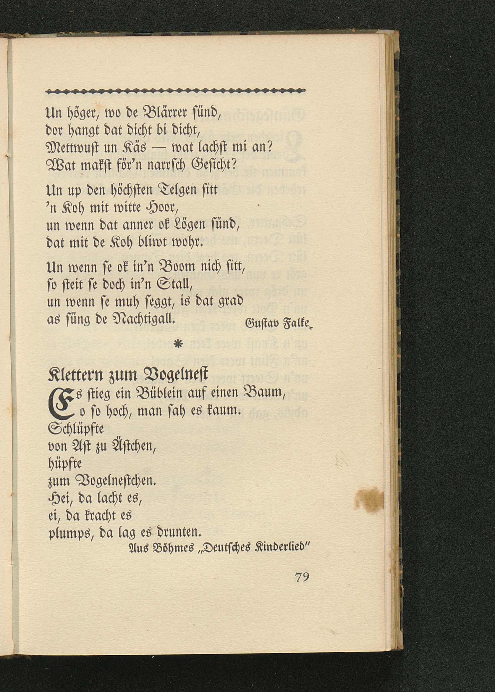 Klettern zum Vogelnest, aus Böhmes "Deutsches Kinderlied"