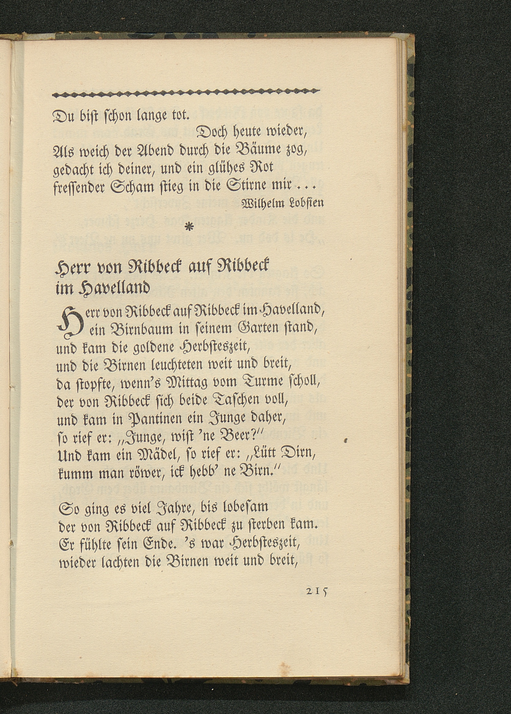 Herr von Ribbeck auf Ribbeck im Havelland, Theodor Fontane