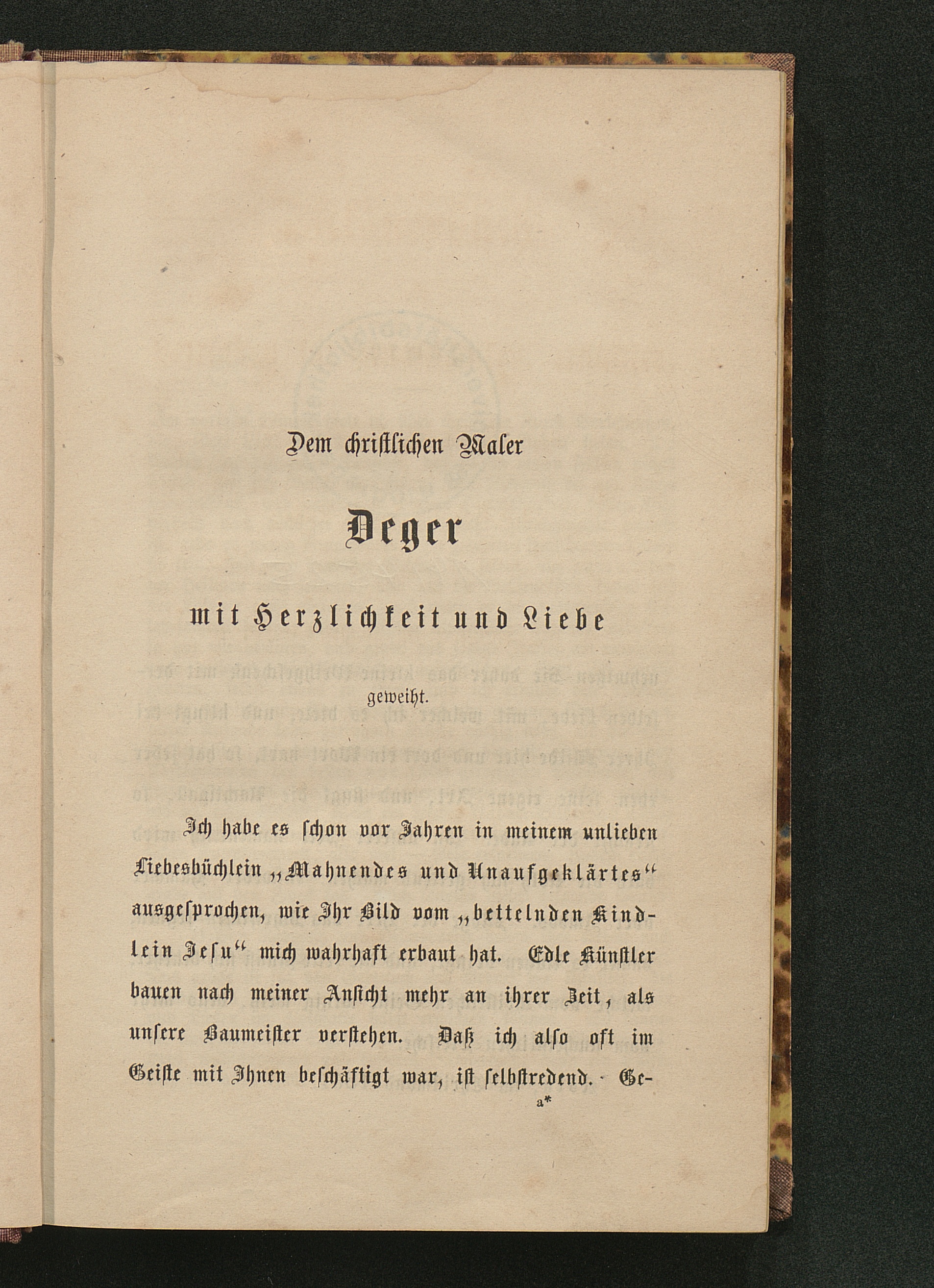 Dem christlichen Maler Deger mit Herzlichkeit und Liebe geweiht.