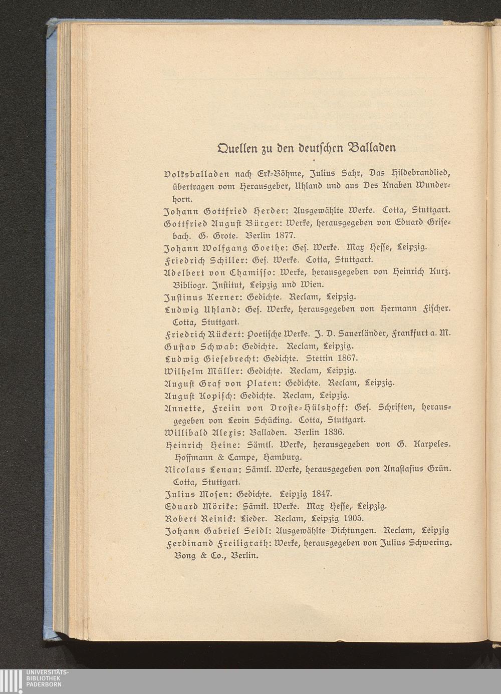 Quellen zu den deutschen Balladen