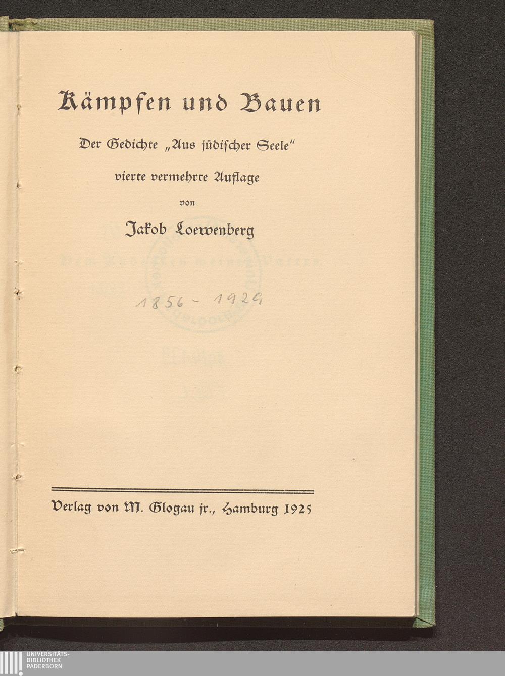 Kämpfen und Bauen : der Gedichte "aus jüdischer Seele" / von Jakob Loewenberg