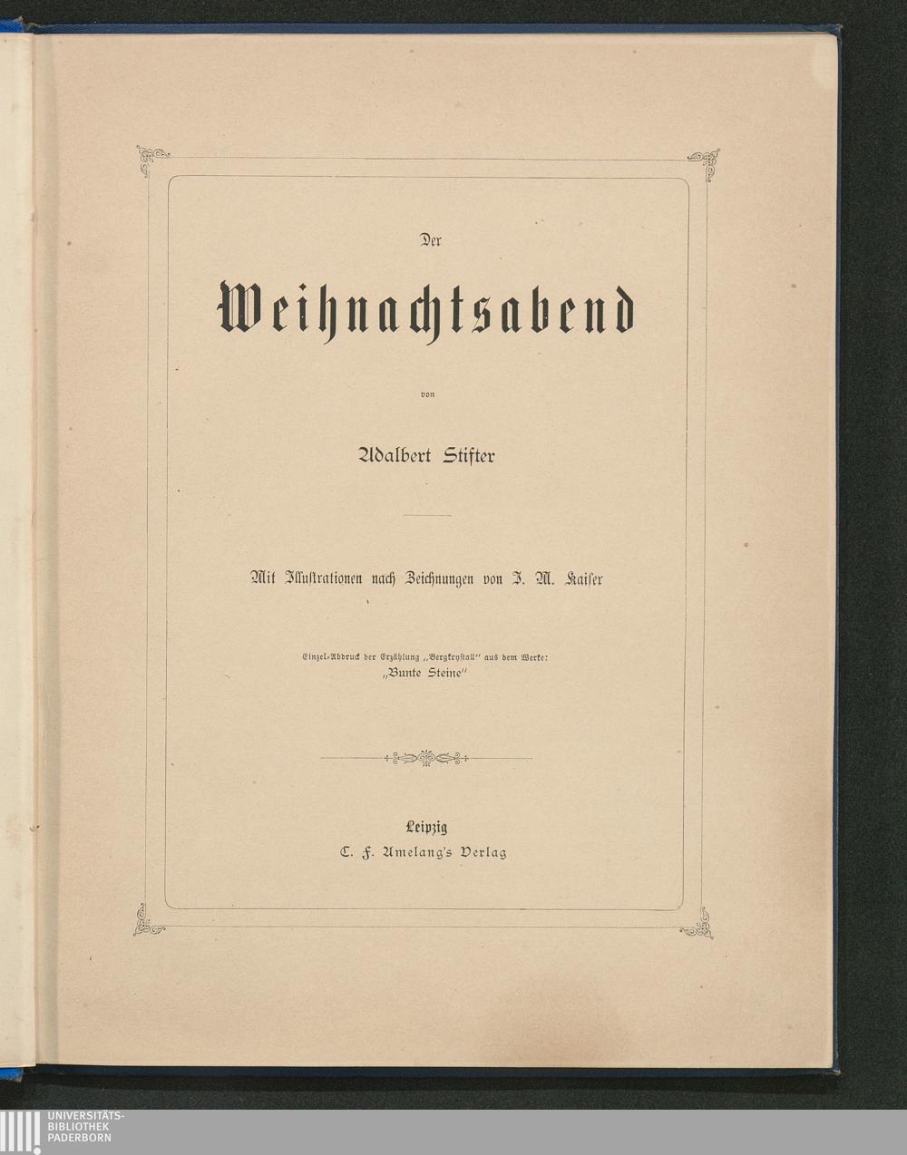 Der Weihnachtsabend / von Adalbert Stifter. Mit Illustrationen nach Zeichnungen von J. M. Kaiser