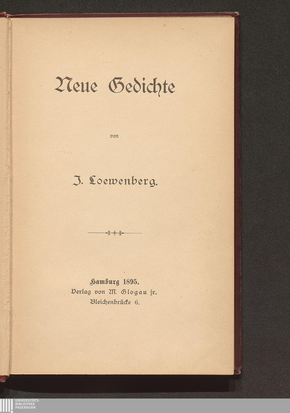 Neue Gedichte / von J. Loewenberg