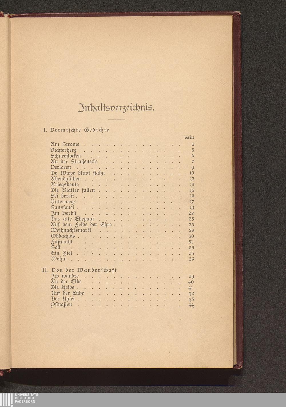 Inhaltsverzeichnis.