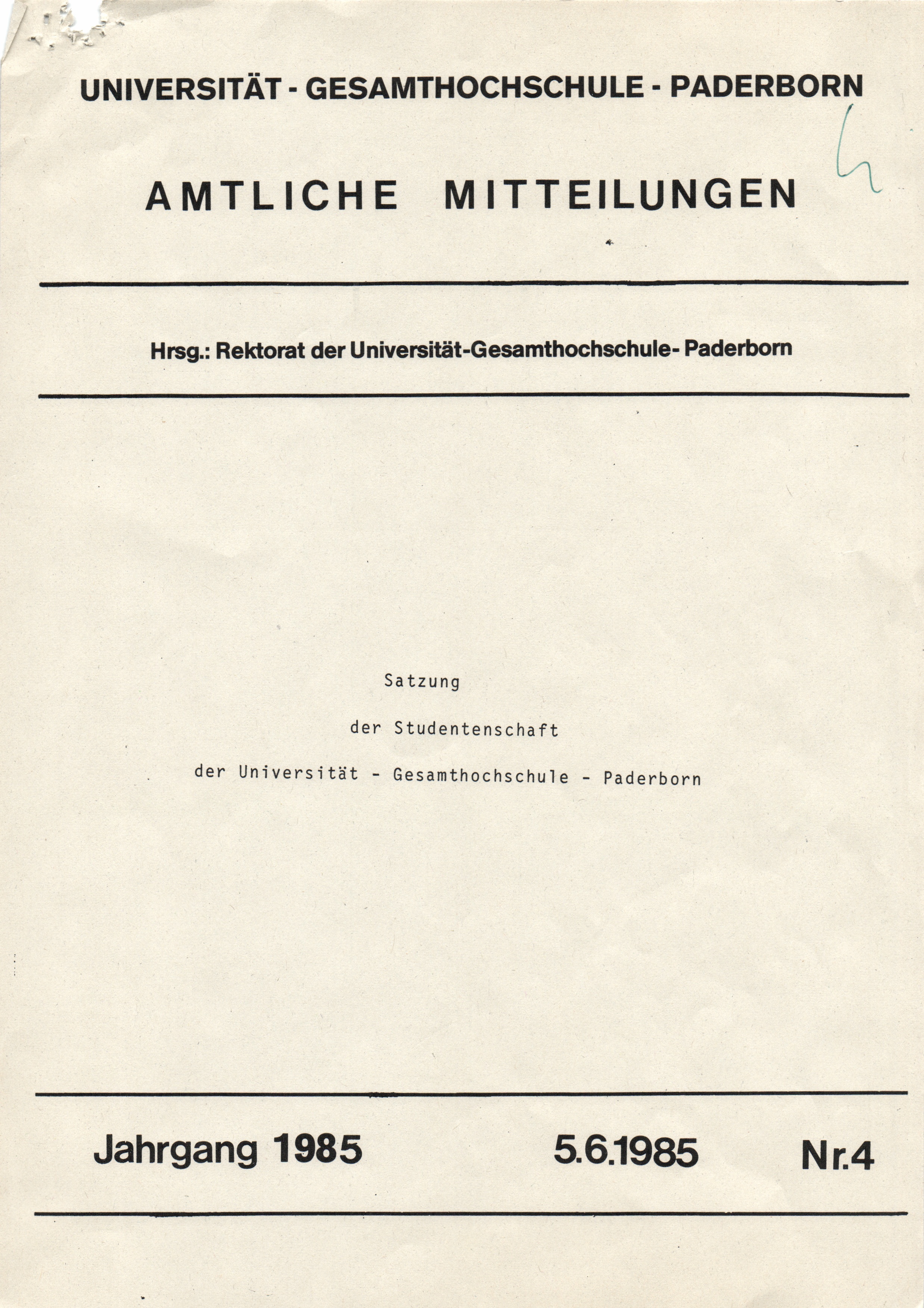 Satzung der Studentenschaft der Universität - Gesamthochschule - Paderborn : 5.6.1985