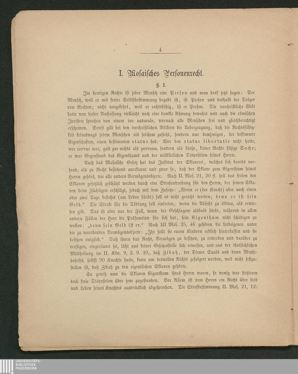 Zum Mosaischen Privatrechte : eine Einladungsschrift zu der am 15. August d. J. [des Jahres] 8 Uhr vormittags in der Universitätskirche und um 10 1/2 Uhr in der akademischen Aula stattfindenden Schlußfeier des Studienjahres an der philosophisch-theologischen Lehranstalt zu Paderborn / von Fr. X. Schulte