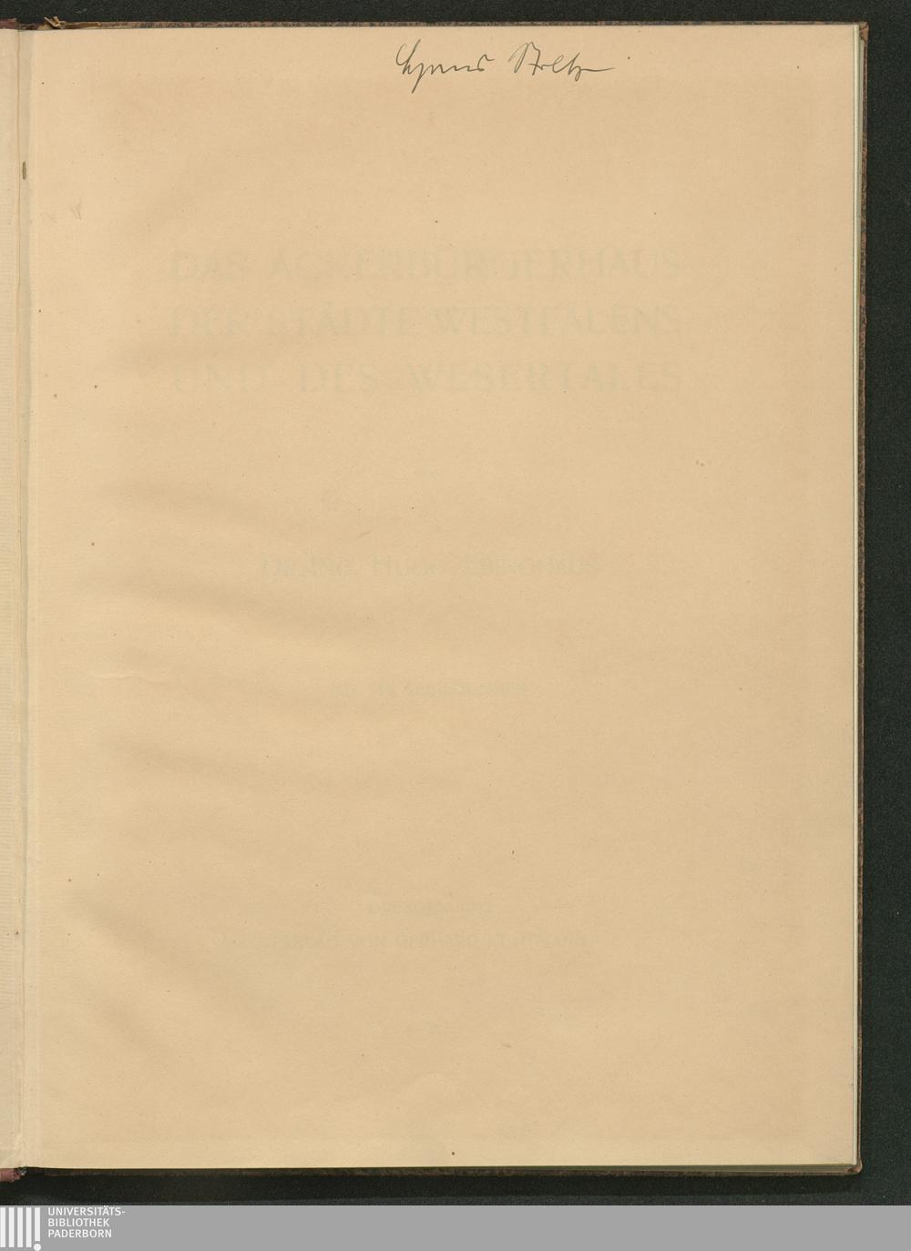 Das Ackerbürgerhaus der Städte Westfalens und des Wesertales / von Hugo Ebinghaus