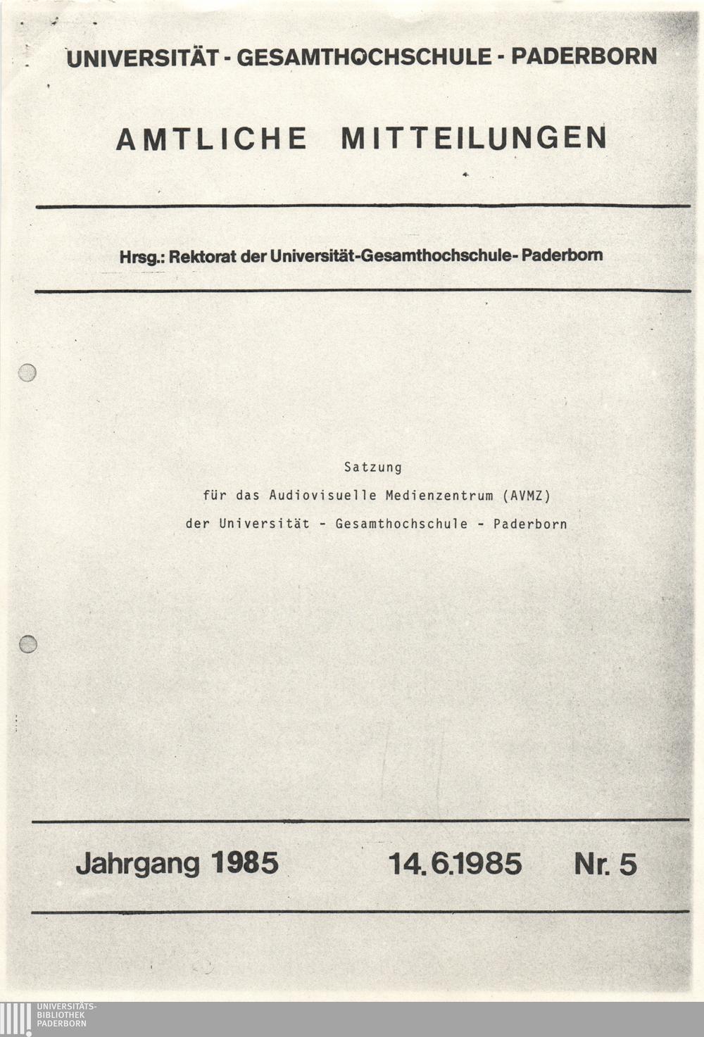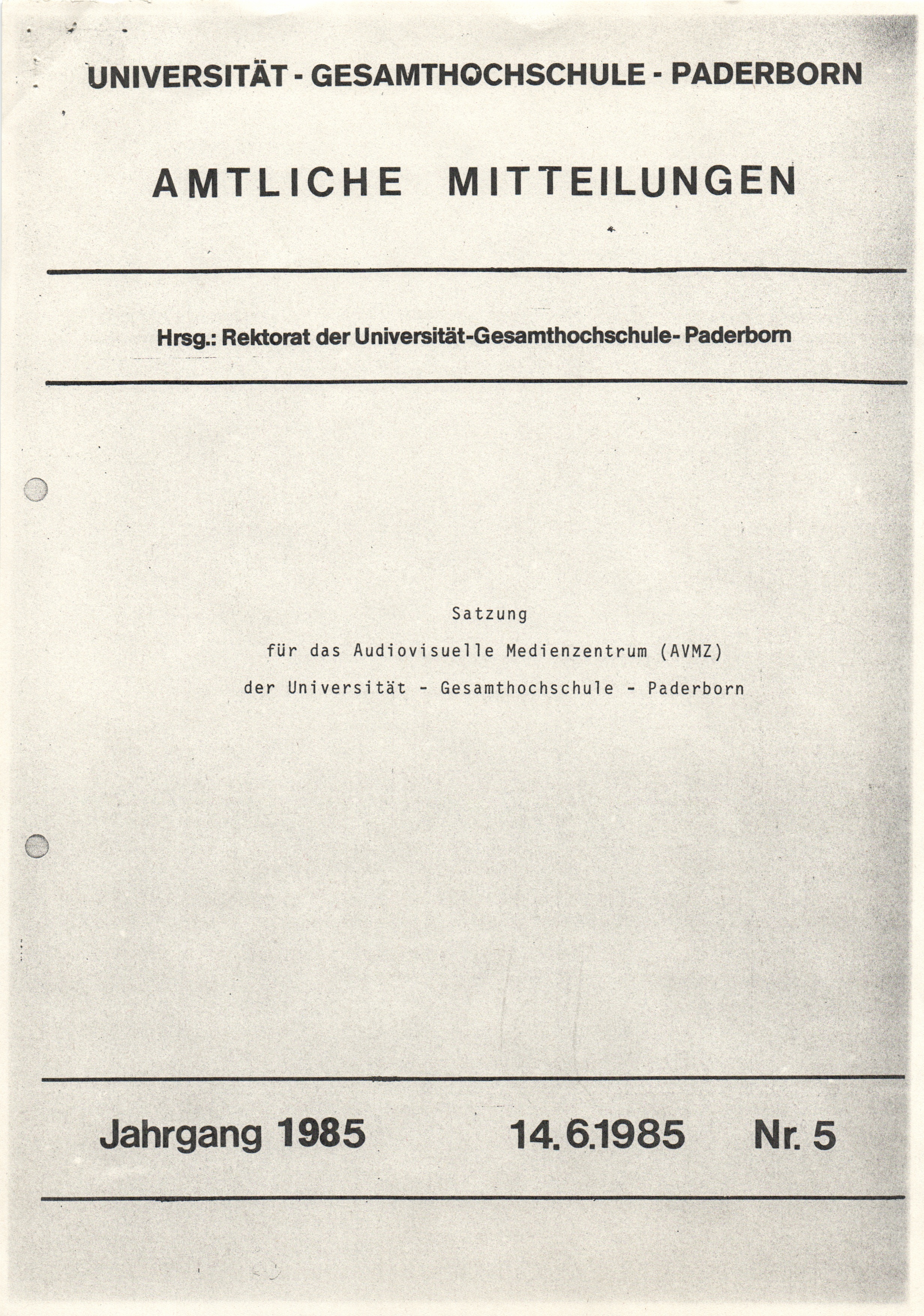Satzung für das Audiovisuelle Medienzentrum (AVMZ) der Universität - Gesamthochschule - Paderborn : 14.6.1985