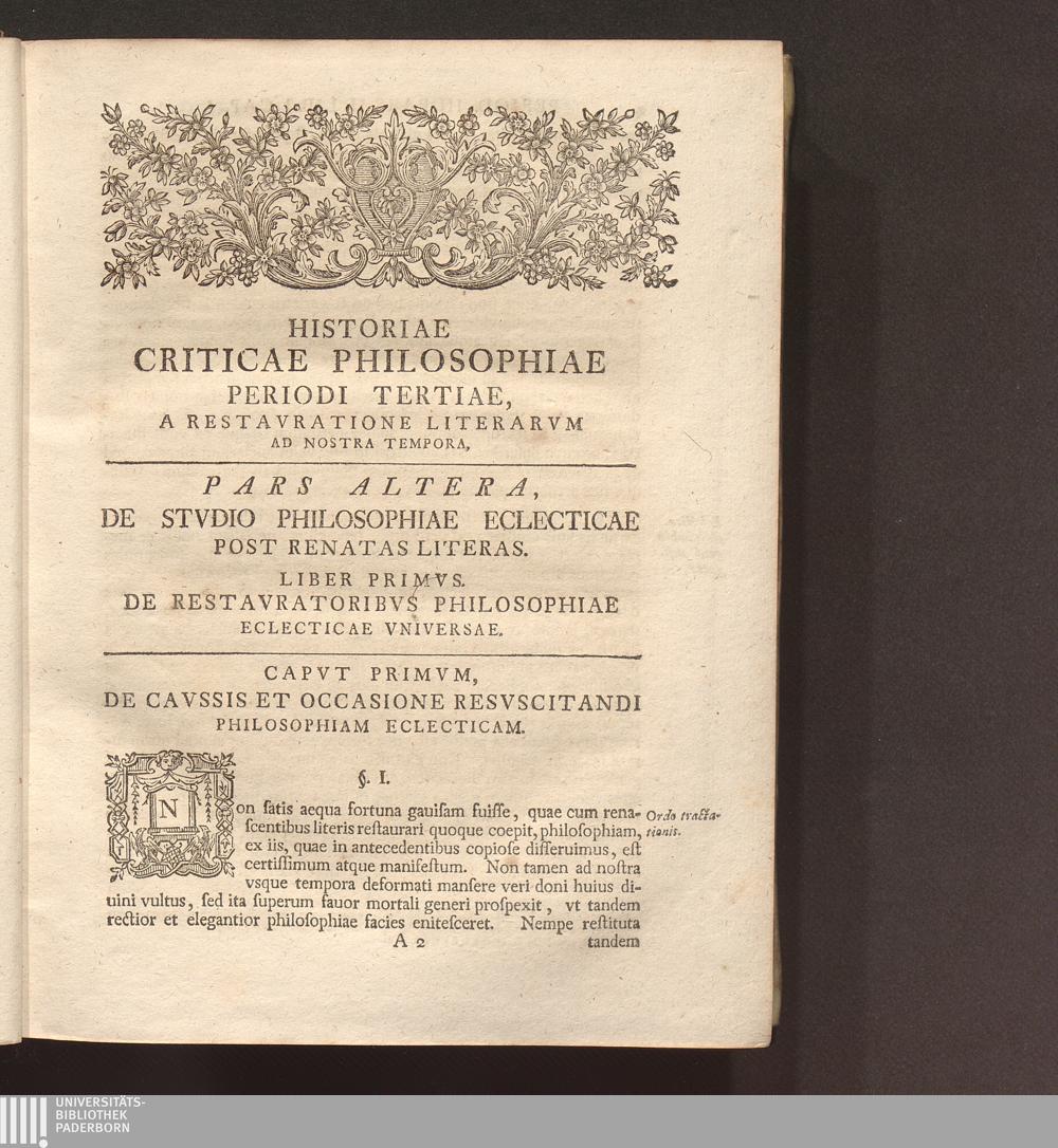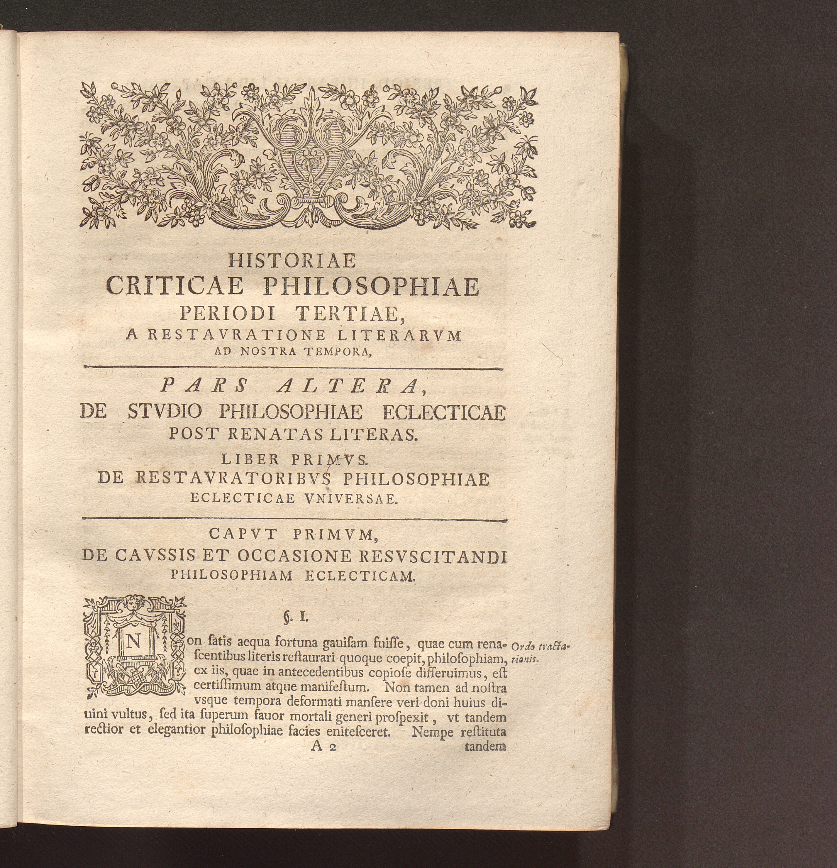 Capvt Primvm, De Cavssis Et Occasione Resvscitandi Philosophiam Eclecticam.