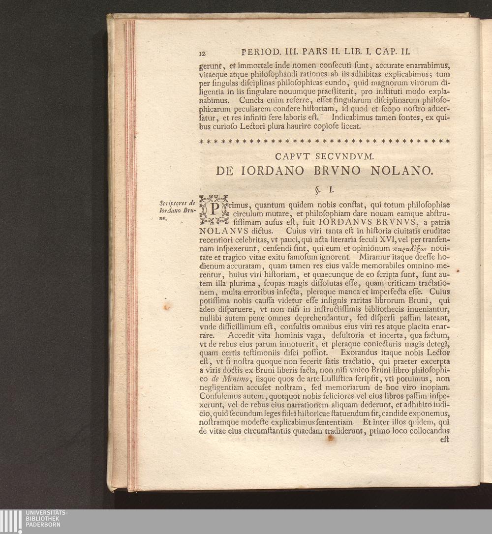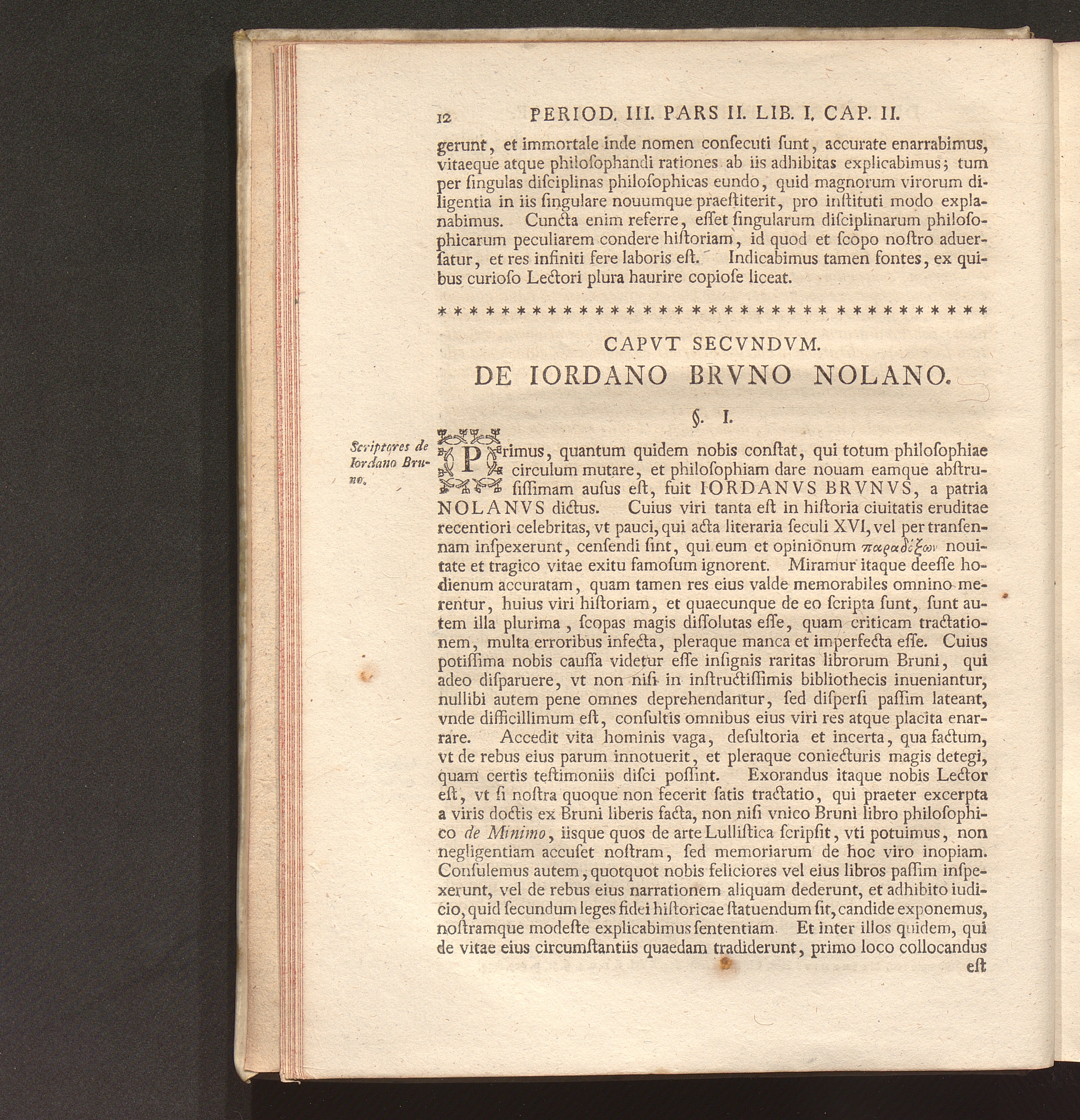 Capvt Secvndvm. De Iordano Brvno Nolano.