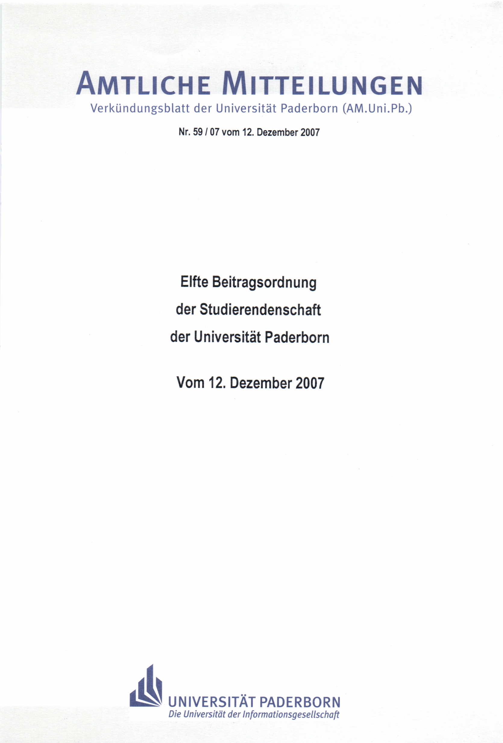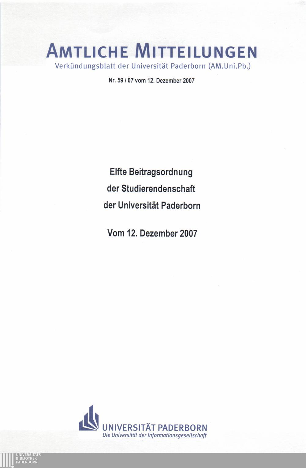 Elfte Beitragsordnung der Studierendenschaft der Universität Paderborn