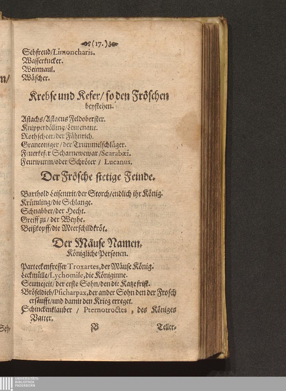 Der Frösche und Mäuse wunderseltsame Hofhaltung; Sonst Froschmäußler genannt : Worinnen der lustigen und muntern Jugend/ so zur Welt-Weißheit und andern hochnůtzlichen Staats-Tugenden bey frühen Jahren pfleget angewehnet zu werden/ umb sich selber zu des gemeinen Besten Nutzen/ zu seiner Zeit zu bedienen ... / [Georg Rollenhagen]