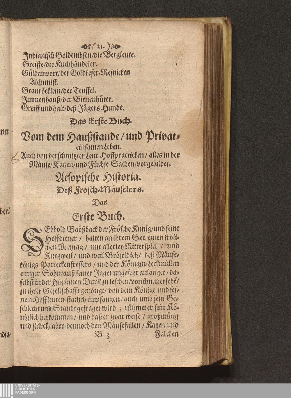 Der Frösche und Mäuse wunderseltsame Hofhaltung; Sonst Froschmäußler genannt : Worinnen der lustigen und muntern Jugend/ so zur Welt-Weißheit und andern hochnůtzlichen Staats-Tugenden bey frühen Jahren pfleget angewehnet zu werden/ umb sich selber zu des gemeinen Besten Nutzen/ zu seiner Zeit zu bedienen ... / [Georg Rollenhagen]