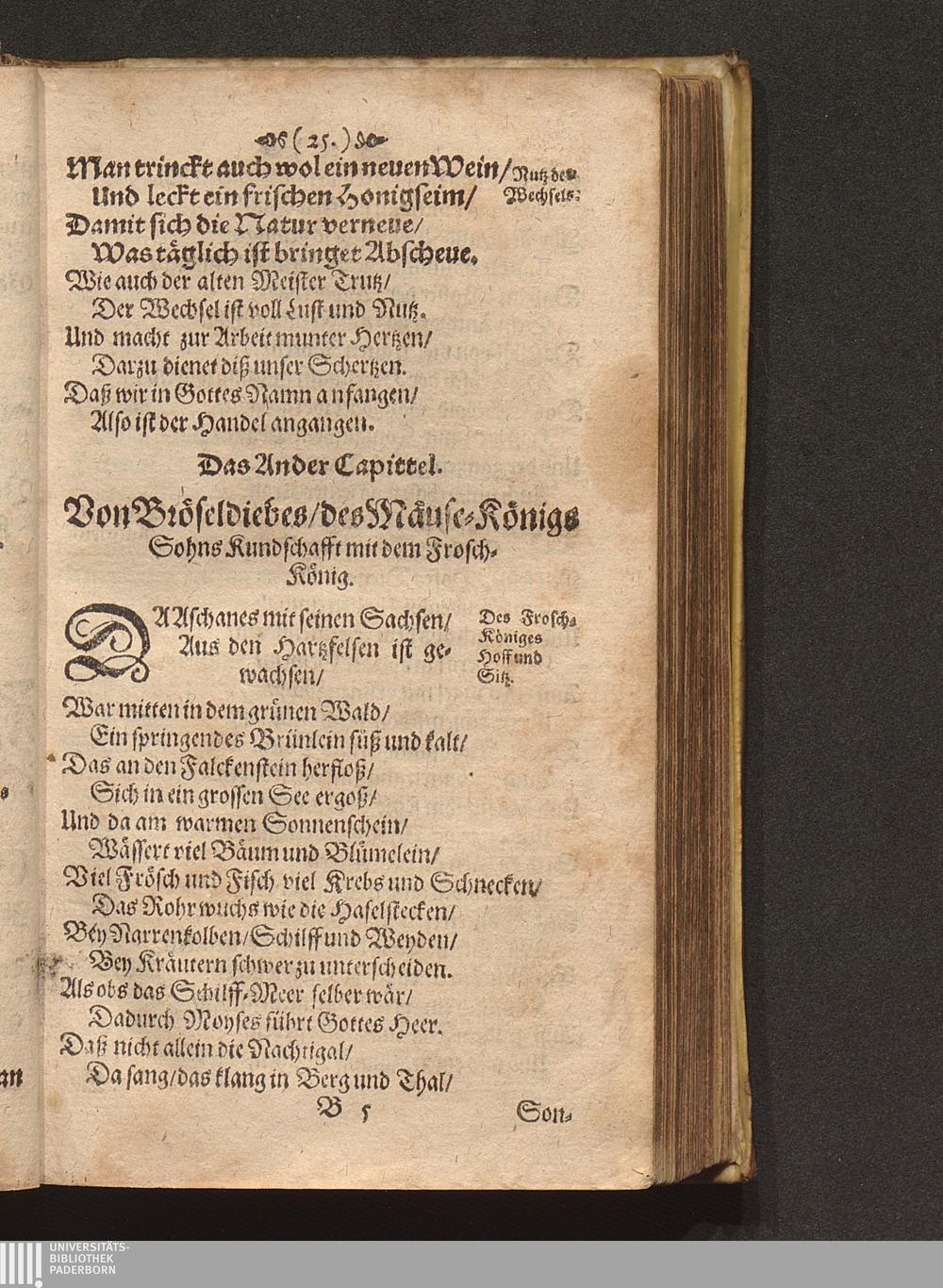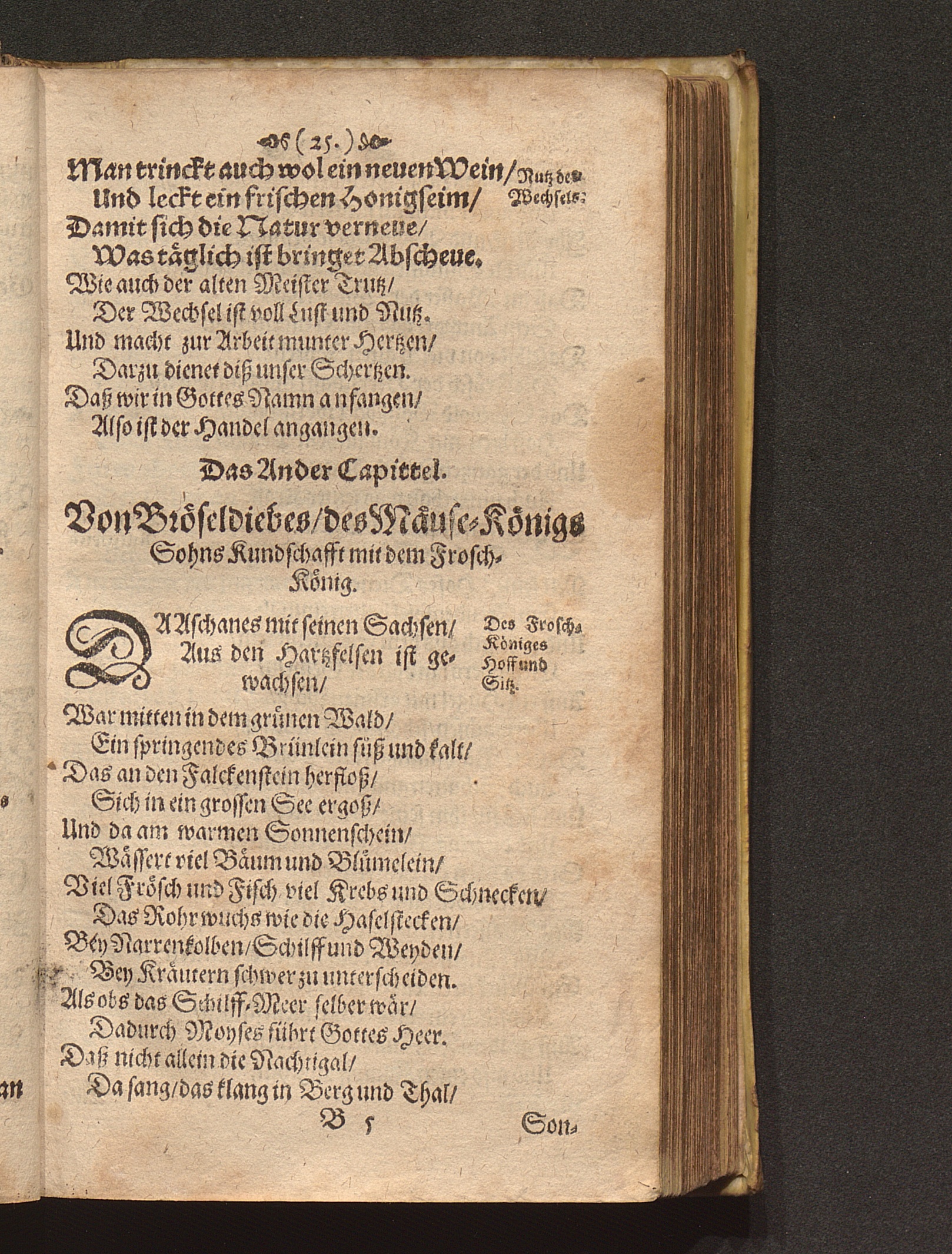 Der Frösche und Mäuse wunderseltsame Hofhaltung; Sonst Froschmäußler genannt : Worinnen der lustigen und muntern Jugend/ so zur Welt-Weißheit und andern hochnůtzlichen Staats-Tugenden bey frühen Jahren pfleget angewehnet zu werden/ umb sich selber zu des gemeinen Besten Nutzen/ zu seiner Zeit zu bedienen ... / [Georg Rollenhagen]
