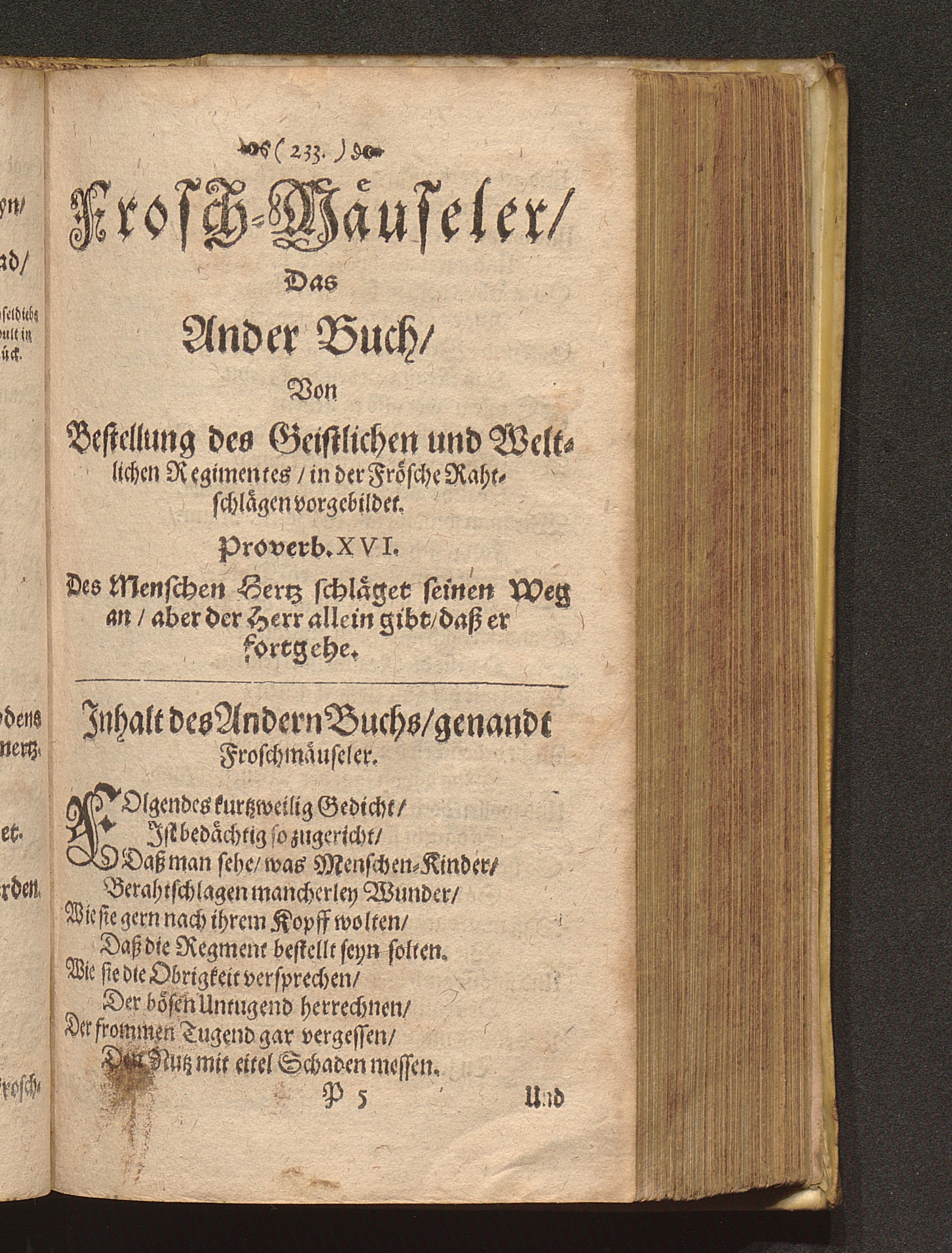 Der Frösche und Mäuse wunderseltsame Hofhaltung; Sonst Froschmäußler genannt : Worinnen der lustigen und muntern Jugend/ so zur Welt-Weißheit und andern hochnůtzlichen Staats-Tugenden bey frühen Jahren pfleget angewehnet zu werden/ umb sich selber zu des gemeinen Besten Nutzen/ zu seiner Zeit zu bedienen ... / [Georg Rollenhagen]