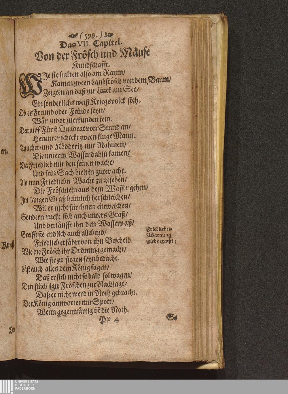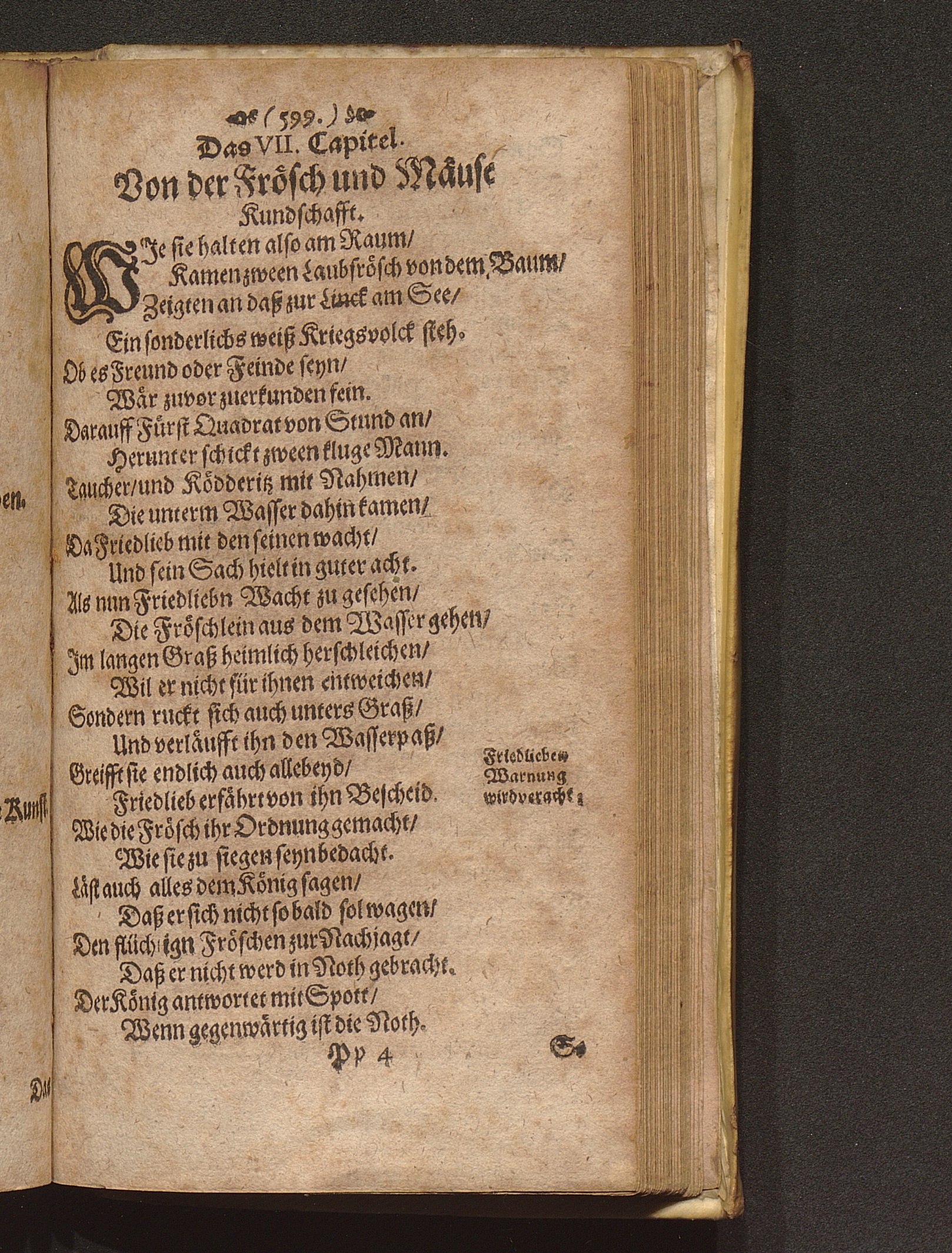 Der Frösche und Mäuse wunderseltsame Hofhaltung; Sonst Froschmäußler genannt : Worinnen der lustigen und muntern Jugend/ so zur Welt-Weißheit und andern hochnůtzlichen Staats-Tugenden bey frühen Jahren pfleget angewehnet zu werden/ umb sich selber zu des gemeinen Besten Nutzen/ zu seiner Zeit zu bedienen ... / [Georg Rollenhagen]