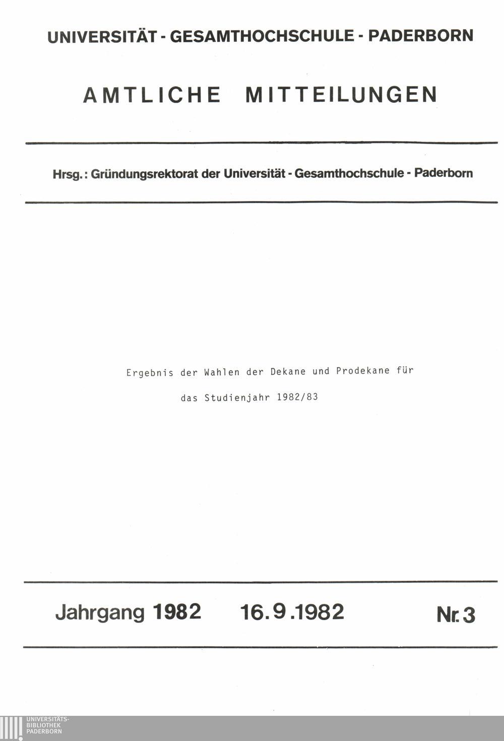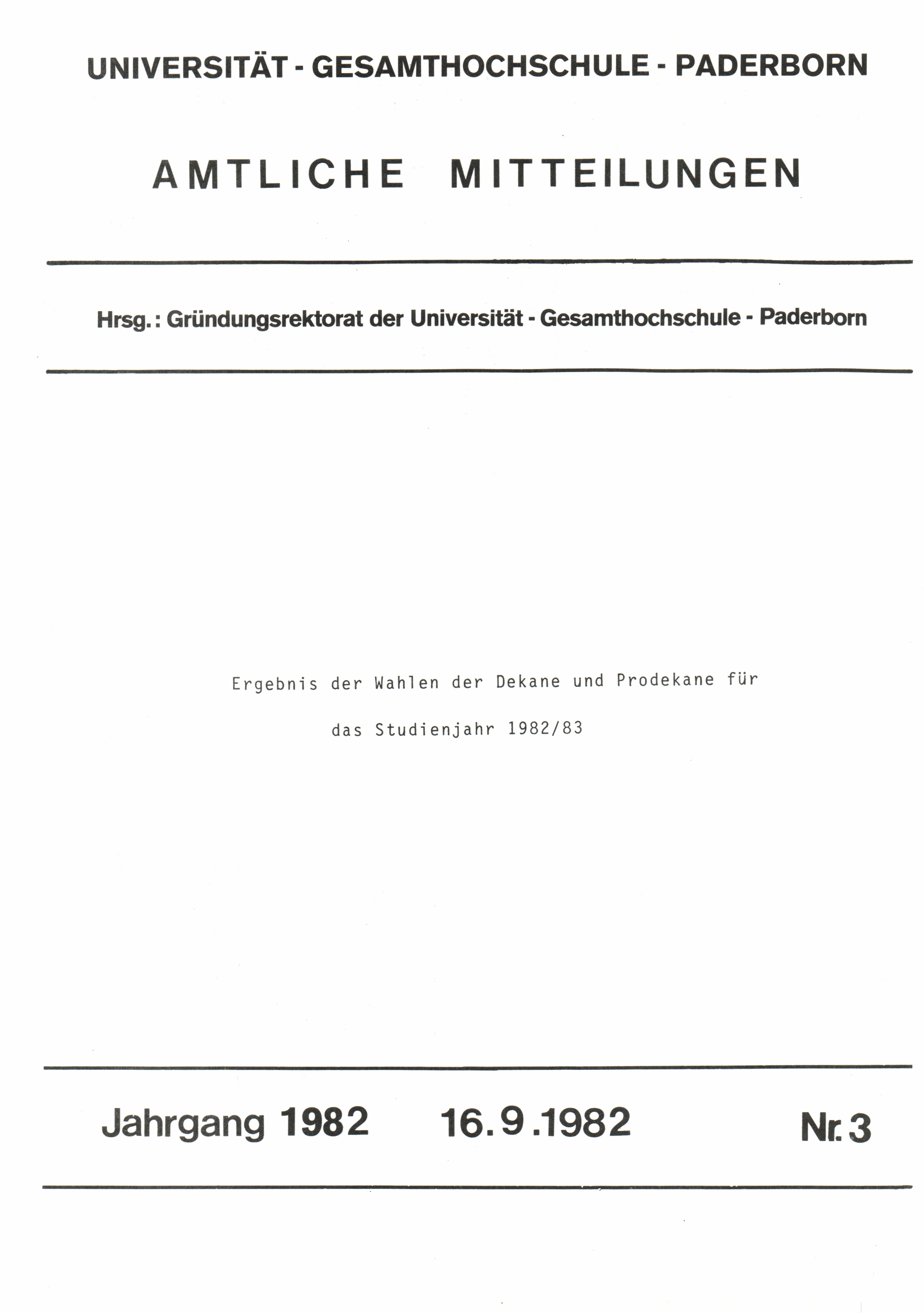 Ergebnis der Wahlen der Dekane und Prodekane für das Studienjahr 1982/83 : 16.9.1982