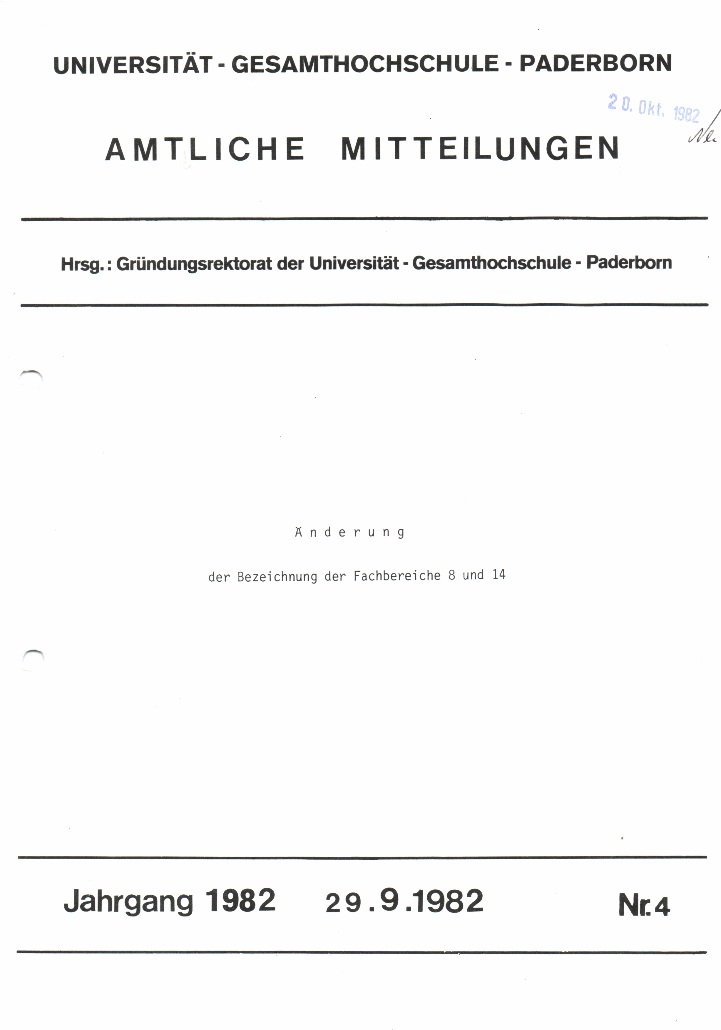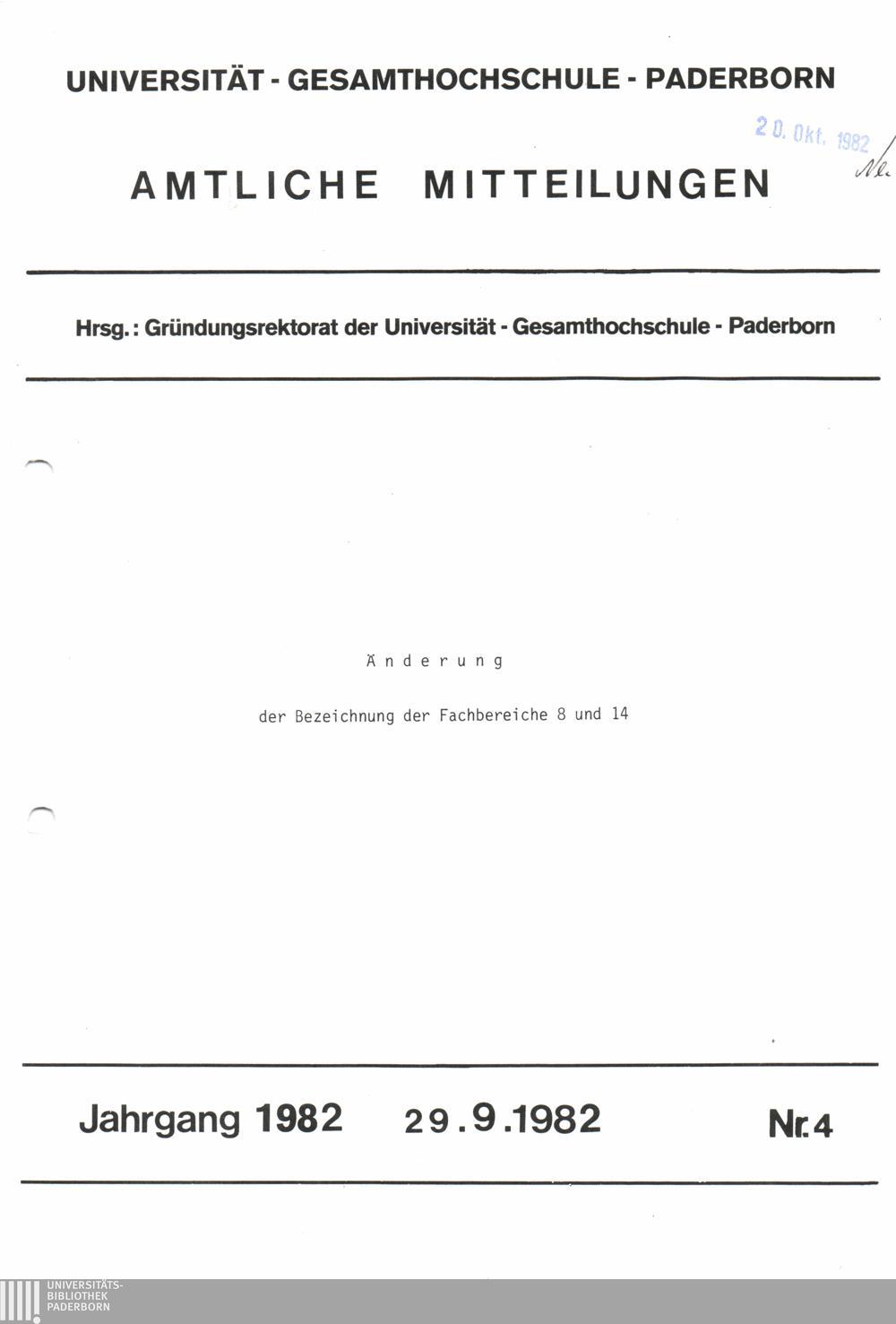Änderung der Bezeichnung der Fachbereiche 8 und 14 : 20.9.1982