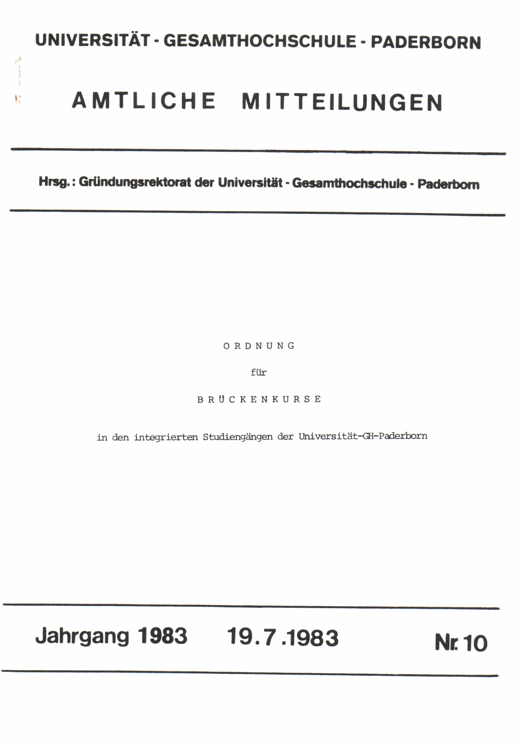 Ordnung für Brückenkurse in den integrierten Studiengängen der Universität-GH-Paderborn : 19.7.1983