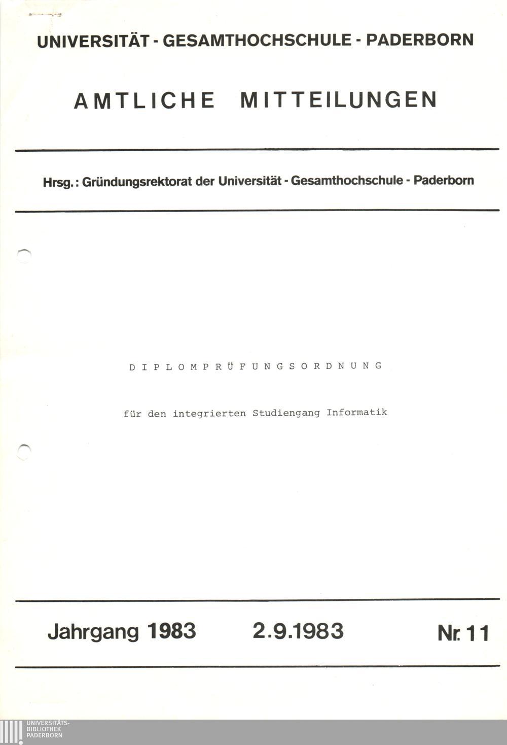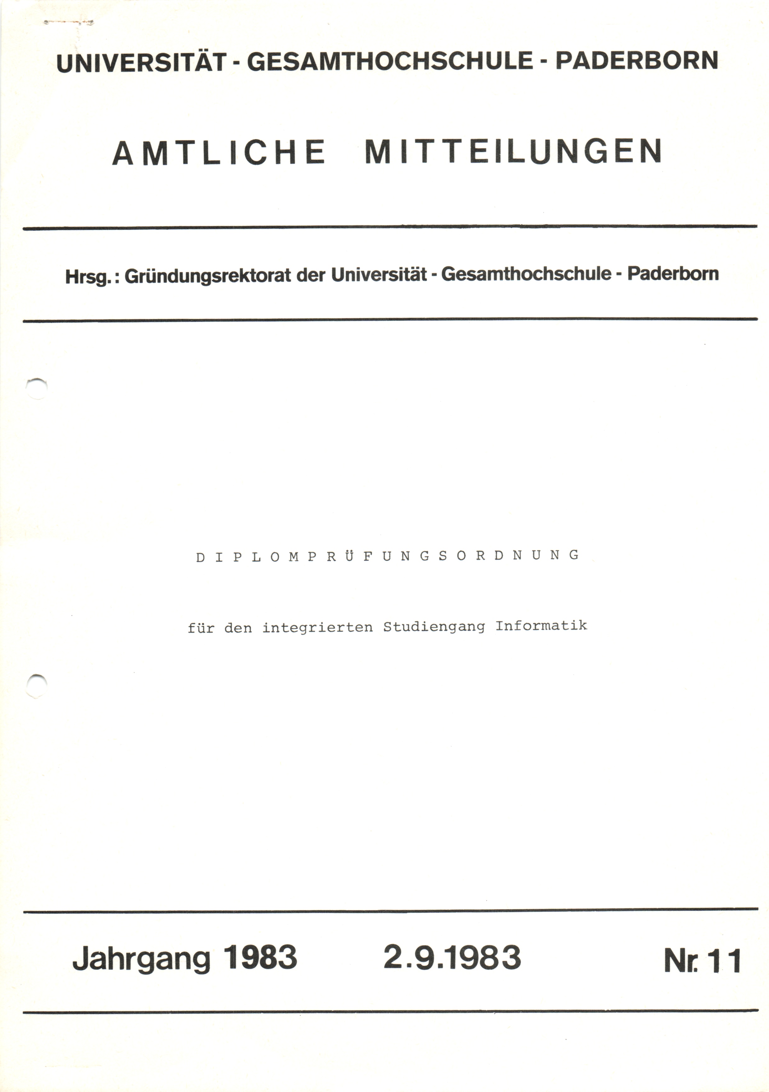 Diplomprüfungsordnung für den integrierten Studiengang Informatik : 2.9.1983