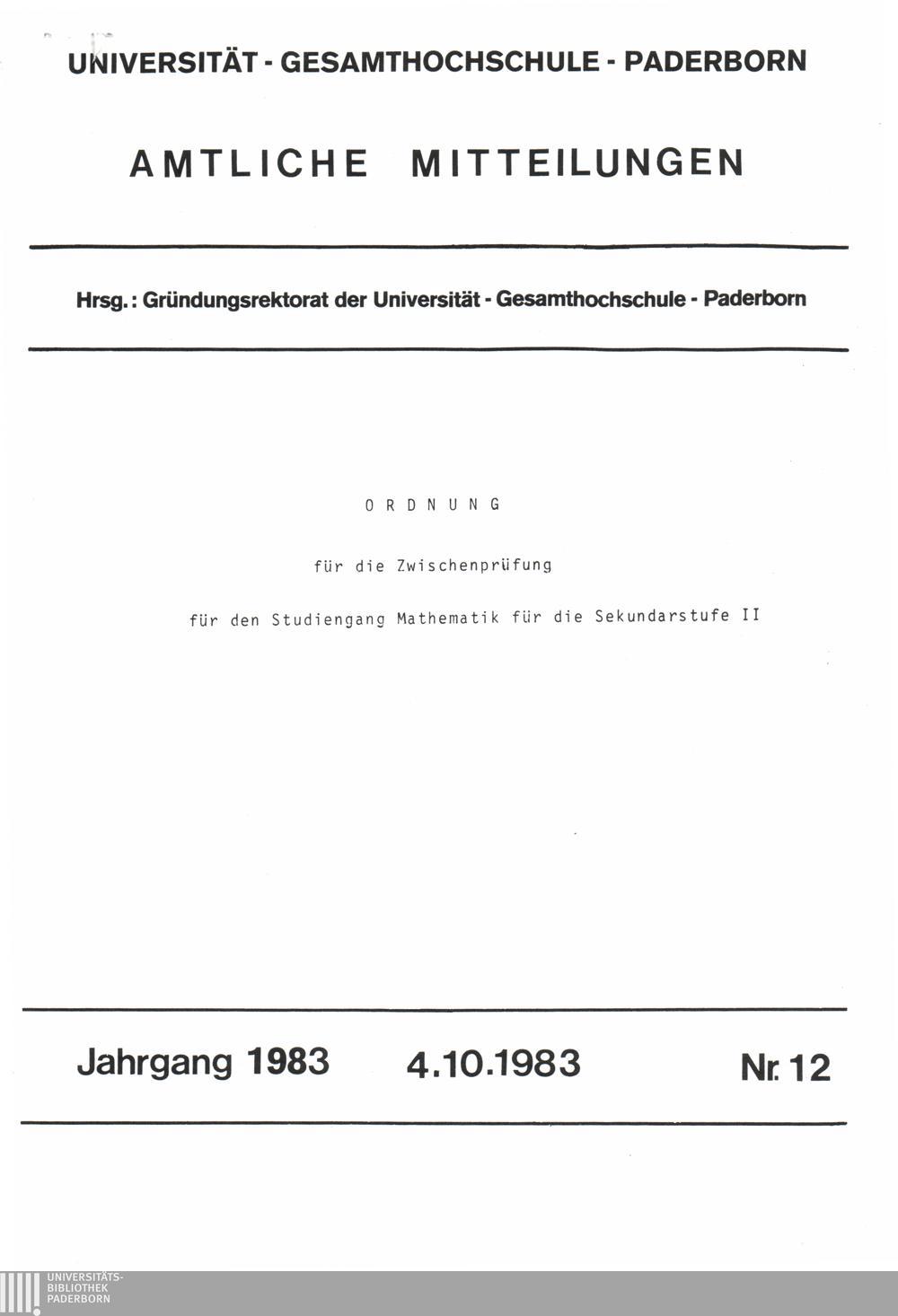 Ordnung für die Zwischenprüfung für den Studiengang Mathematik für die Sekundarstufe II : 4.10.1983
